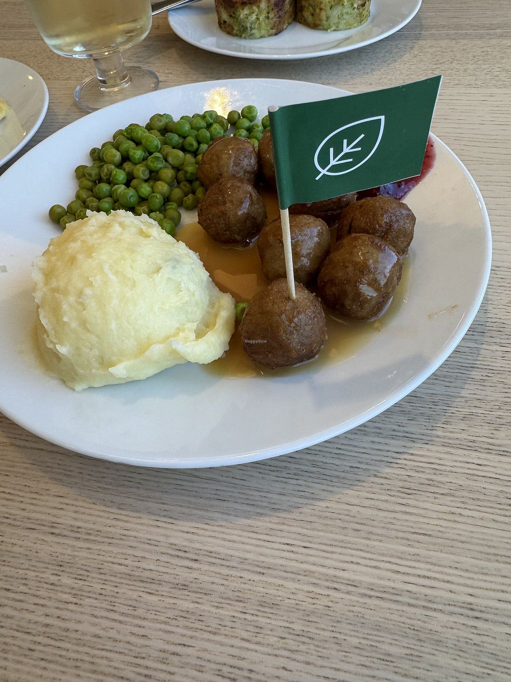 Vegan Plant Based Balls, lingonberry jam, steamed peas and mashed pota…