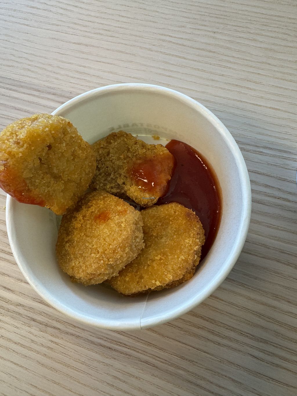 Side order of French fries and Vegan Samosa (stuffed with TVP ground)