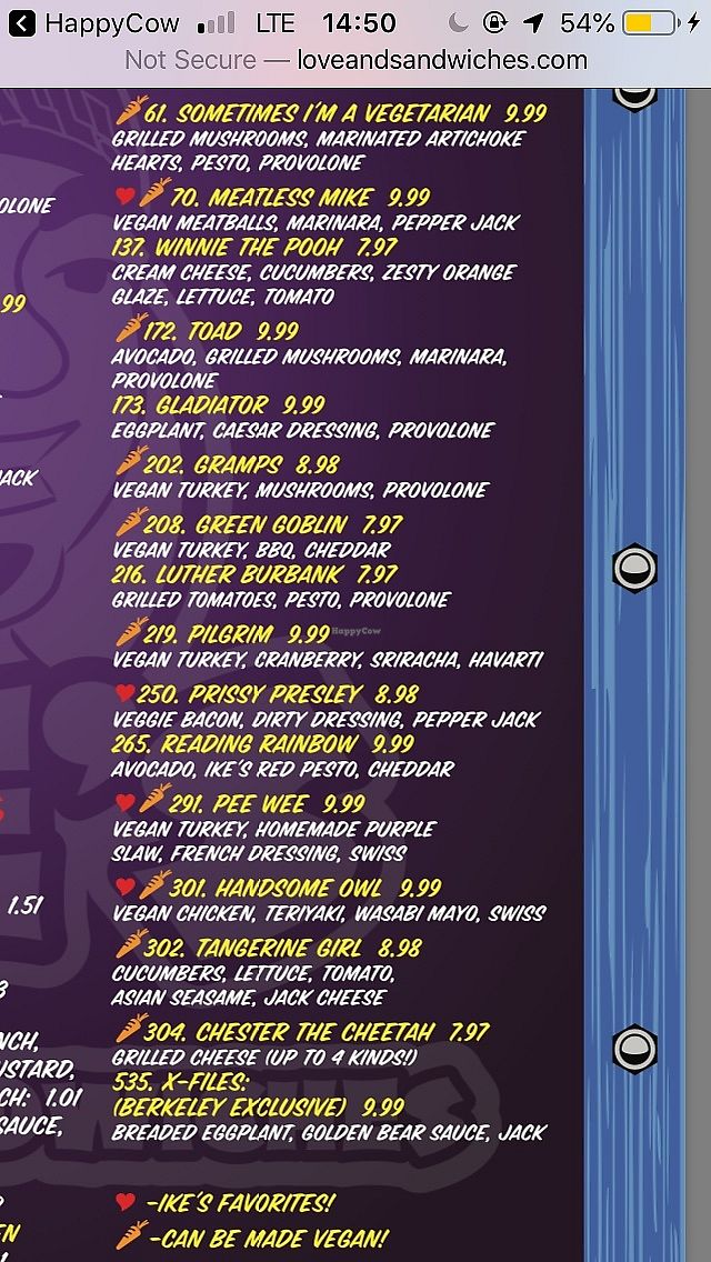 Ike's has a few different sandwiches that can be made vegan—just specify at the register. The vegan dirty sauce is to die for!