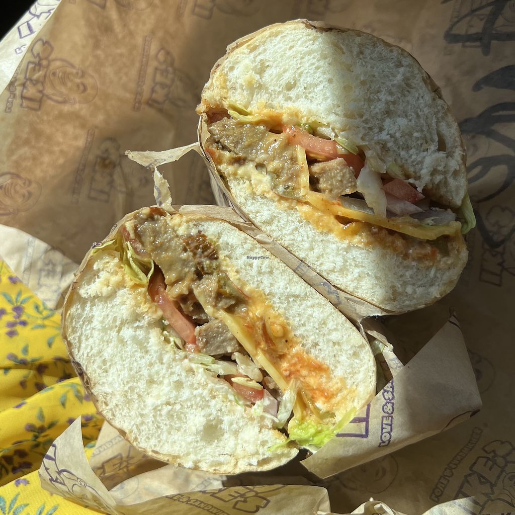 meatless mike with vegan cheese and vegan dirty sauce