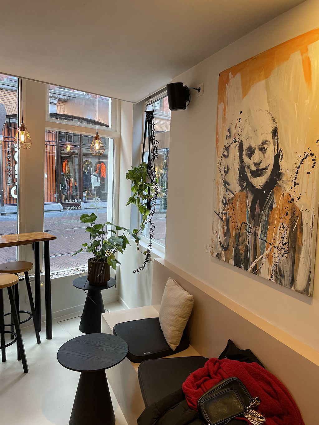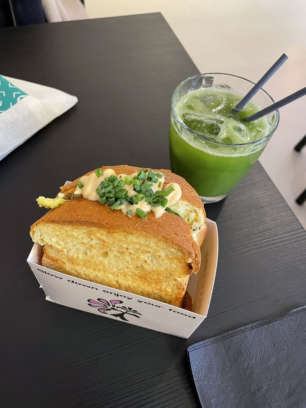 Small Japanse style coffee and lunch place. Tofu sandwich and avocado panini that can be made vegan. Coconut and oat milk for coffee, lovely juices.