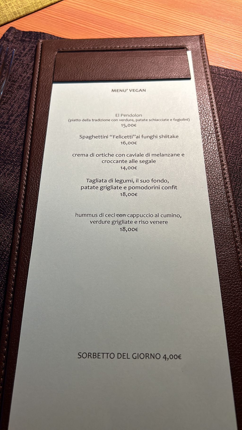 Vegan menu