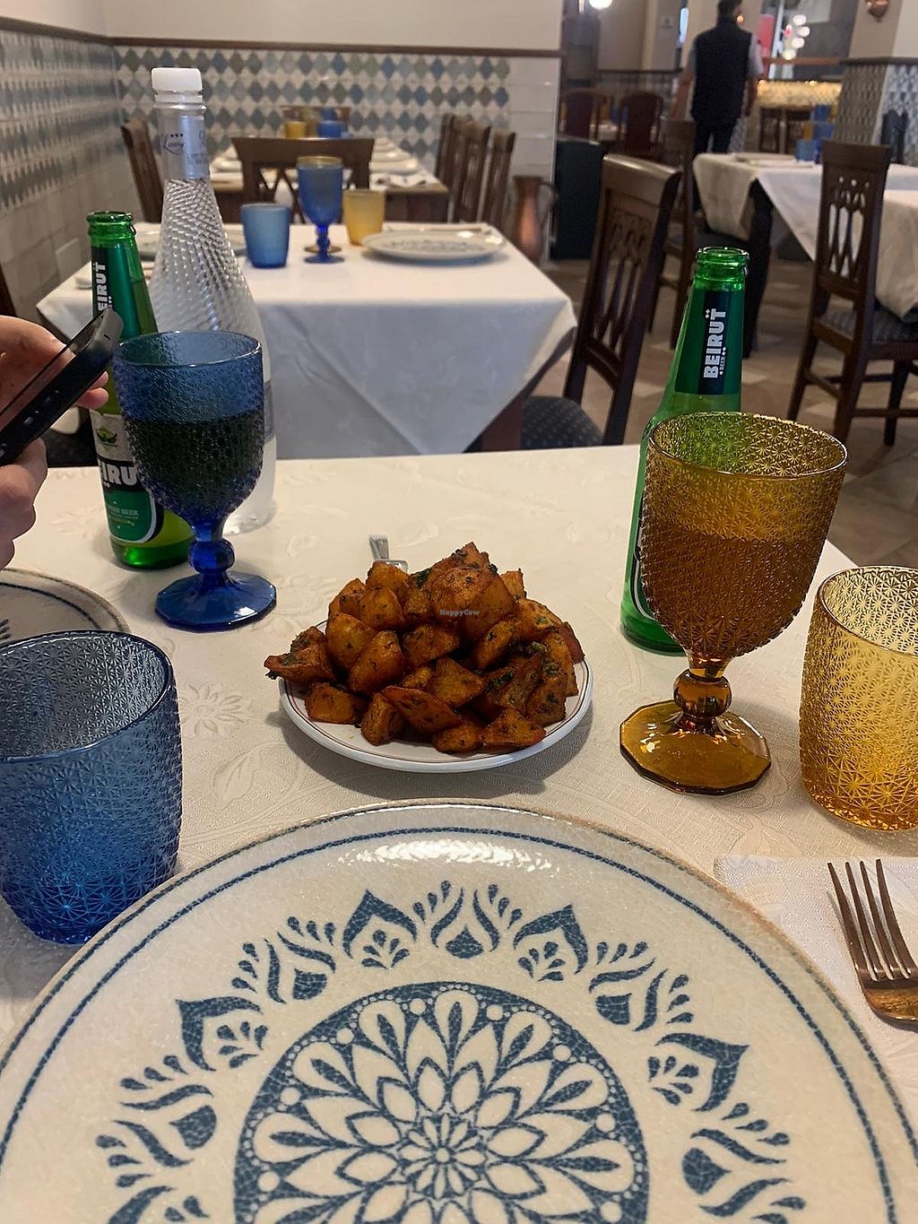 Serves meat, vegan options available. Lebanese restaurant with plenty of vegan options such as hummus, eggplant dips, falafels, batata harra (vegetable dish originating from Lebanon) and more. Dogs allowed. Open Mon 20:00-23:00, Wed-Sun 20:00-23:00. Closed Tue.