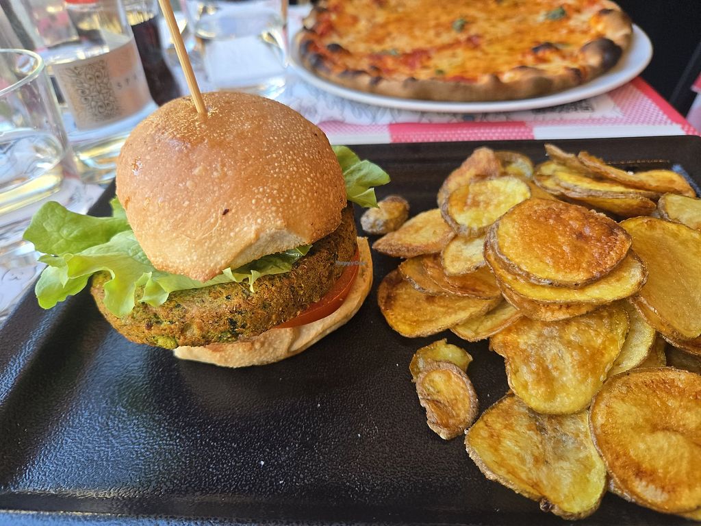 Vegan veggie burger with chips