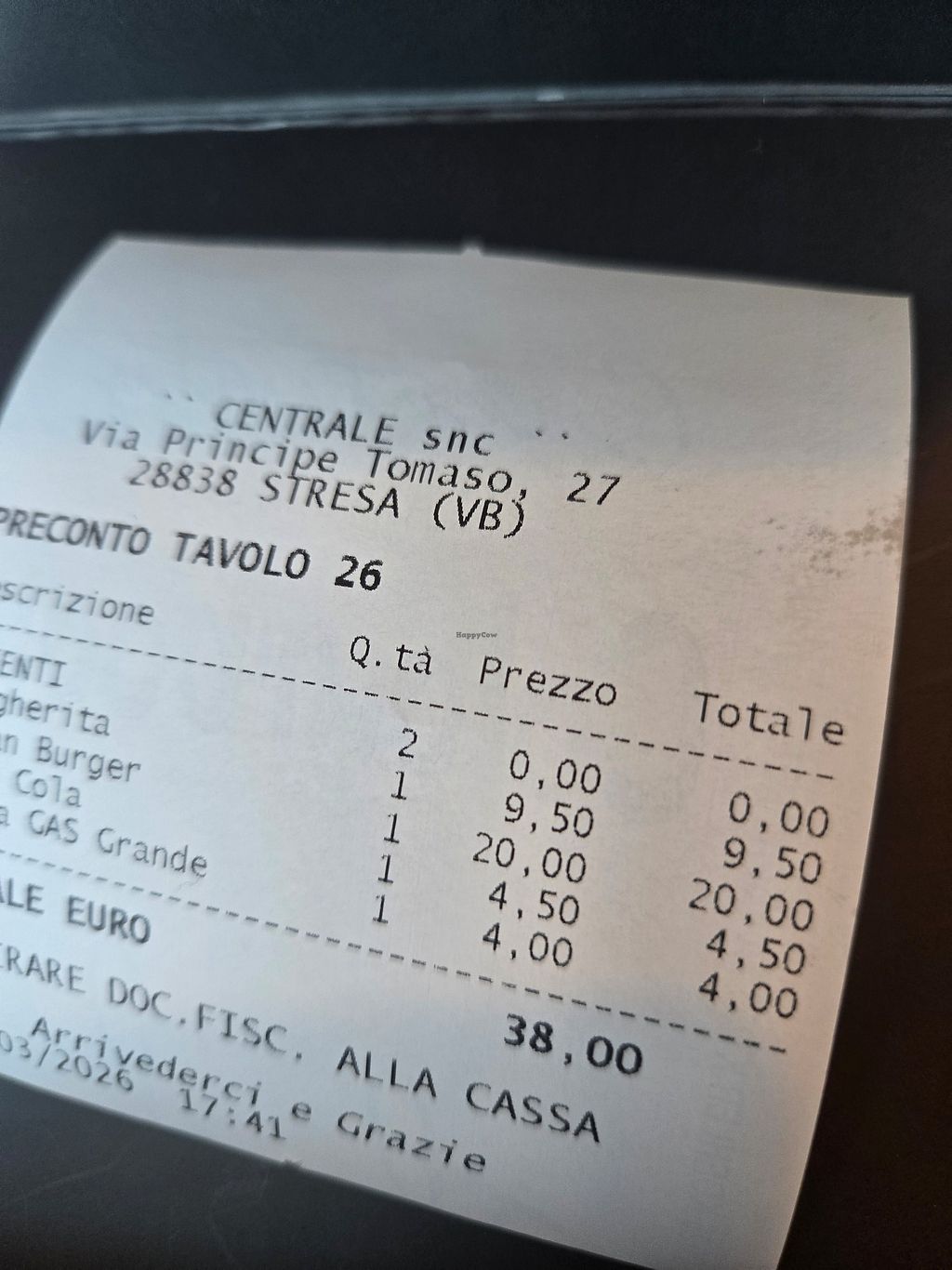 Vegan section of the menu