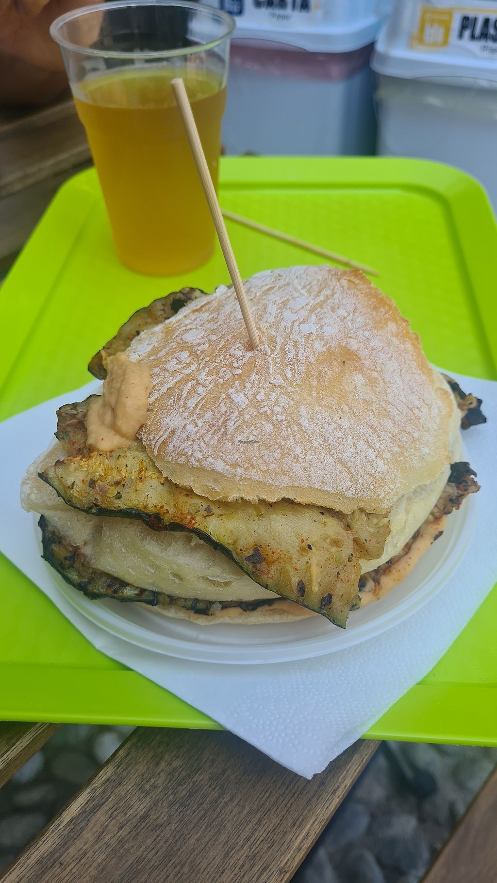 Un panino vegano con zucchine e hummus molto buono.