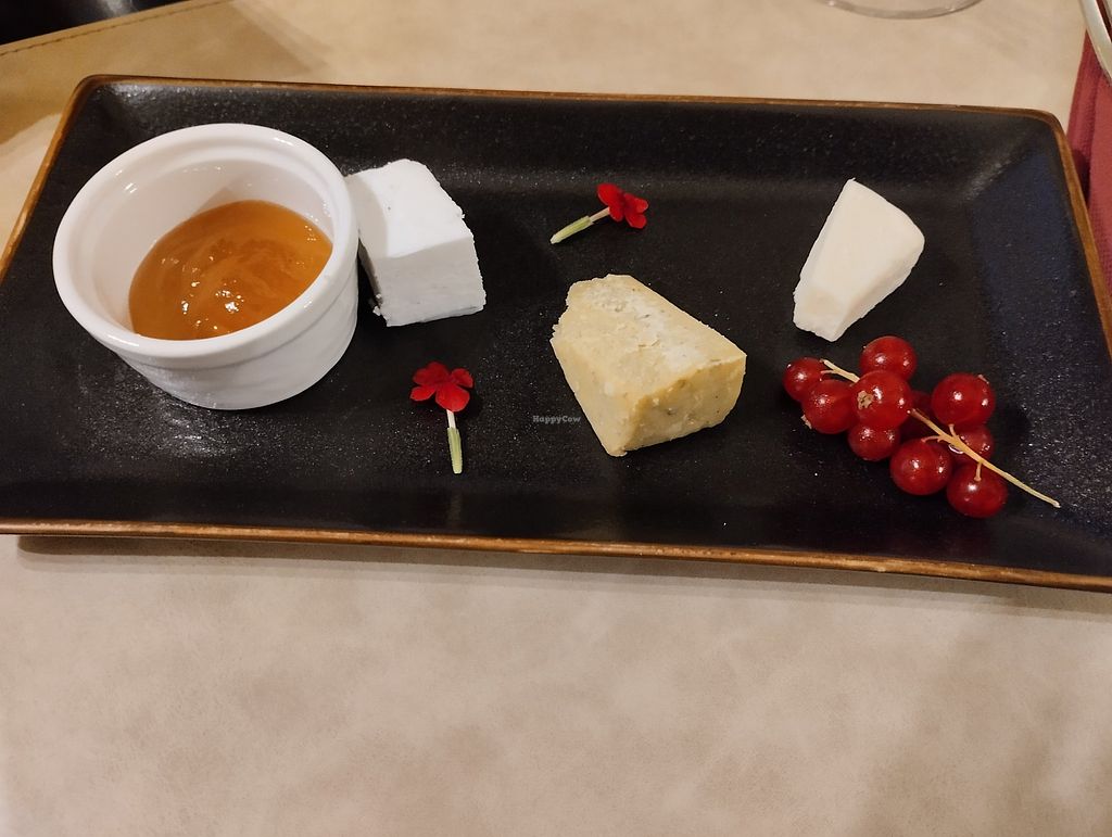 Vegan grill platter with grilled eggplant, tofu, vegan burger, falafel…