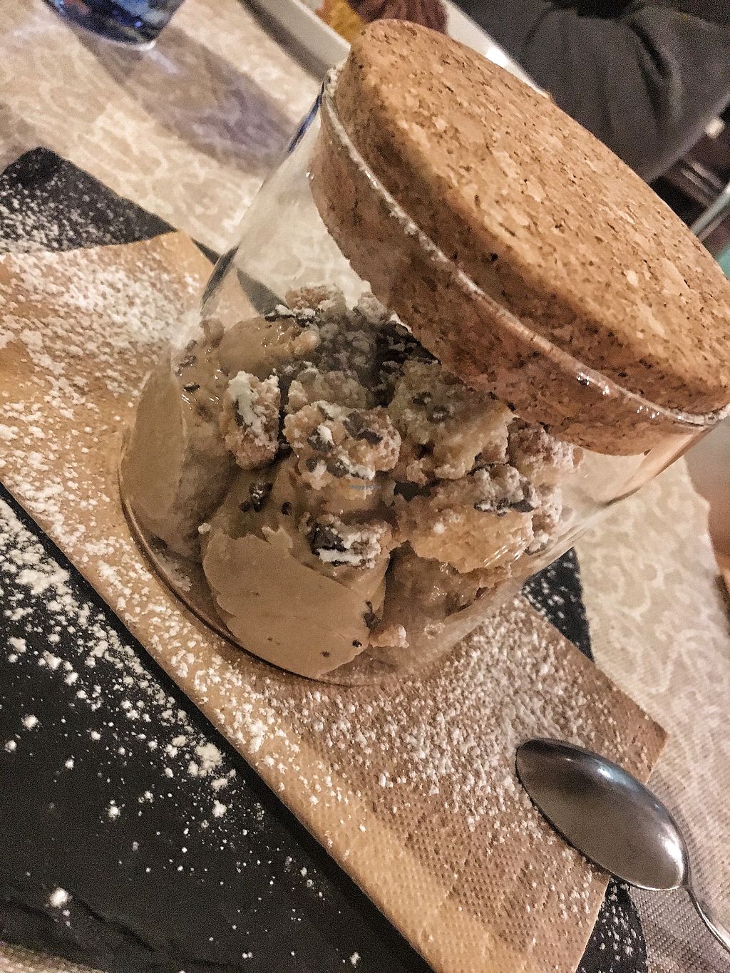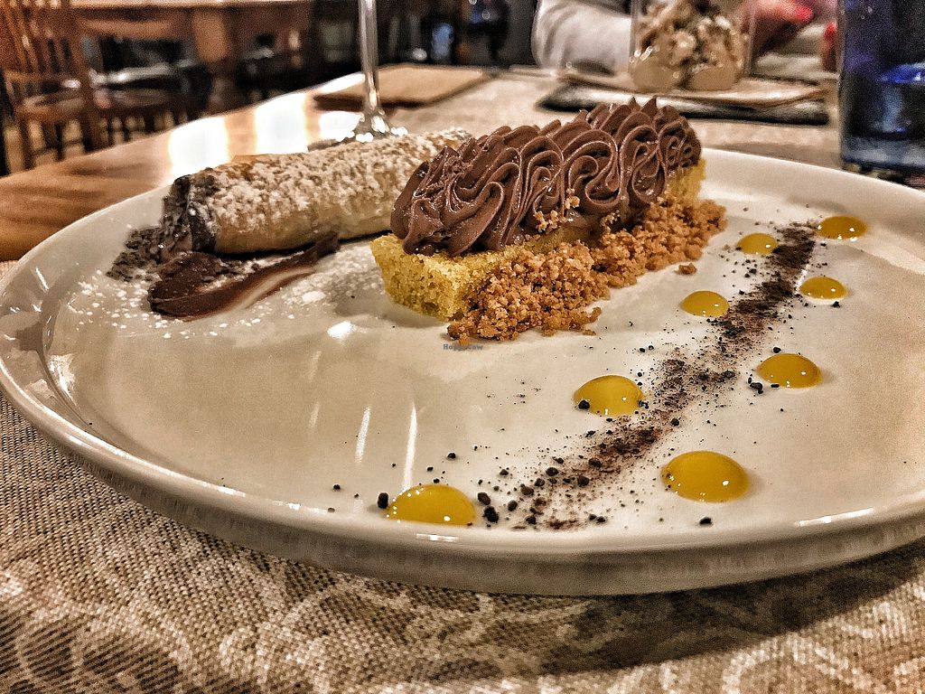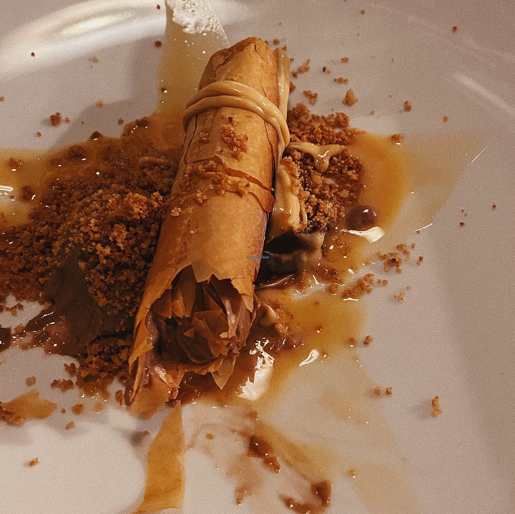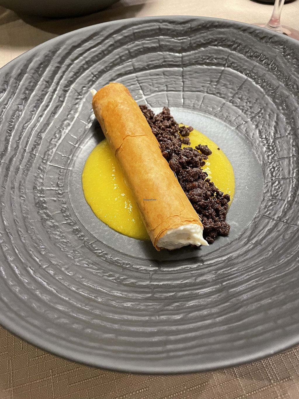 Desert: Cannolo fillo pasta with gianduia, hazelnut crumble and salted…