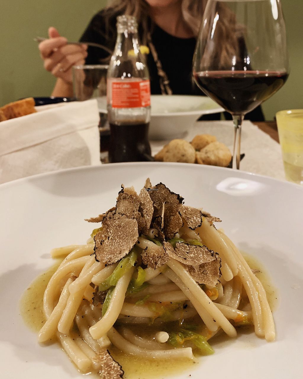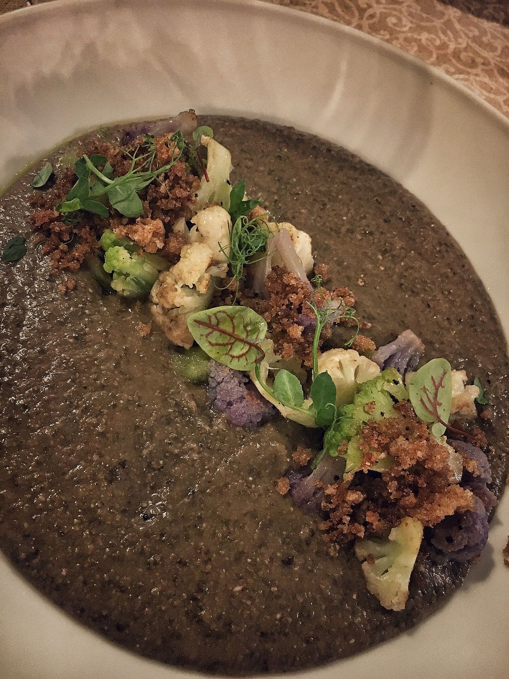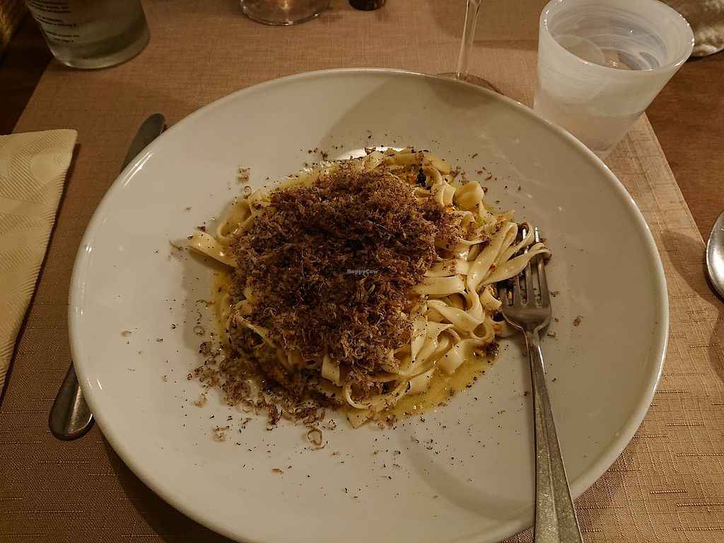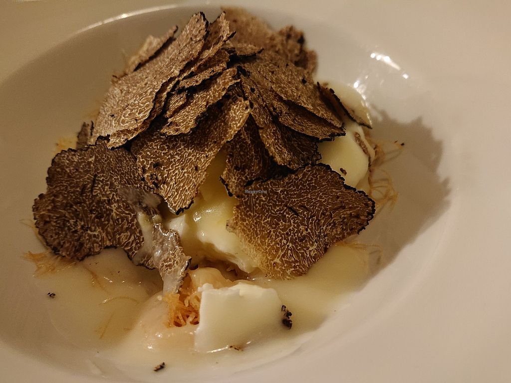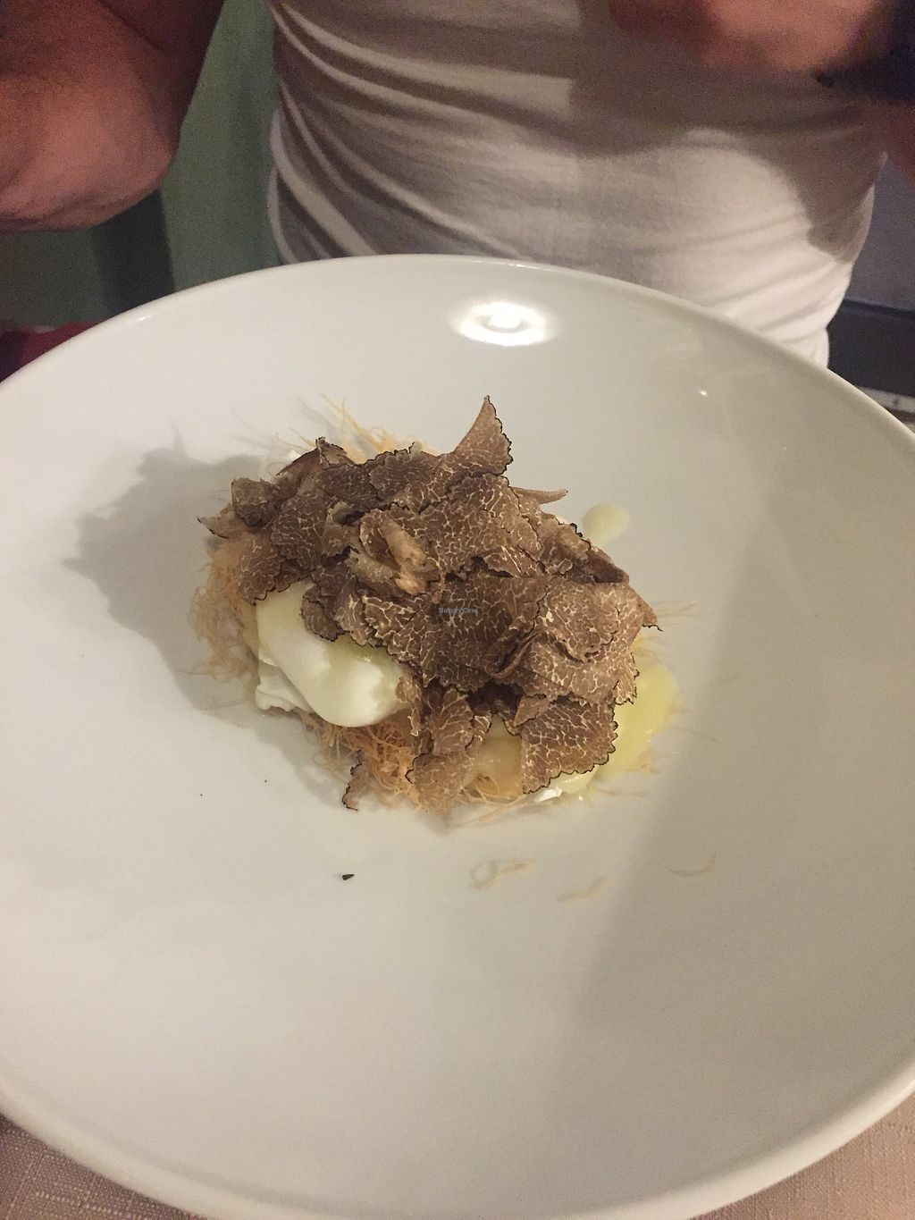 Main course: Poached egg on a basket of kataifi pasta, black truffle a…