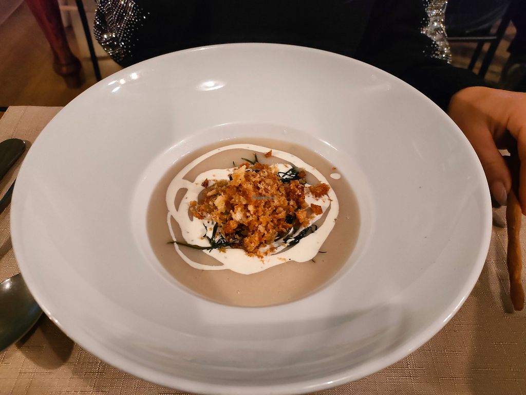 Pignone Parmentière cream, cereal crackers, sautéed chicory and raw Po…