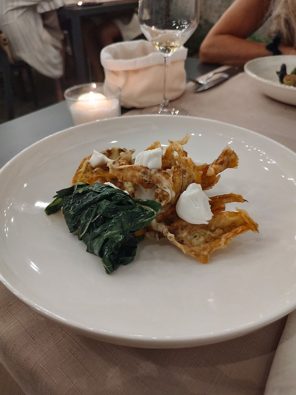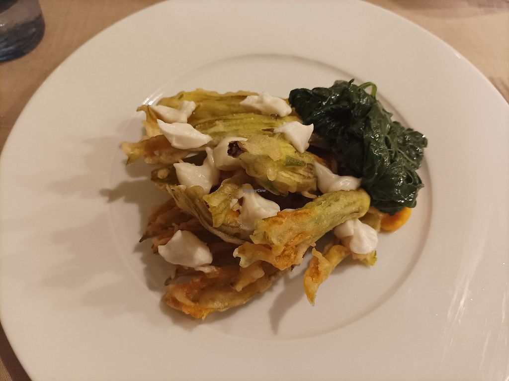 Fried Zucchini Flower πΌ with Rice Stracciatella and SautΓ© Spinach πΏ