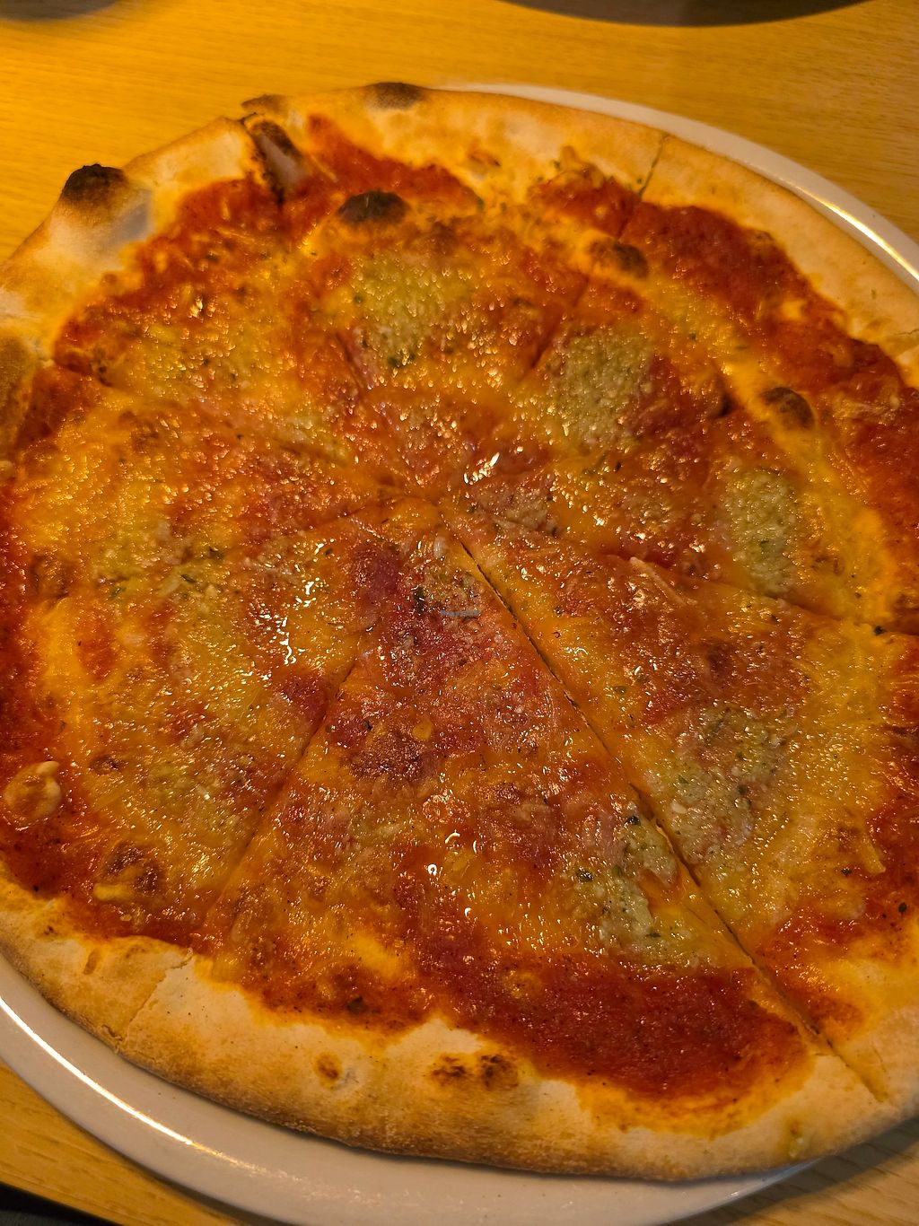 Serves meat, vegan options available.Pizza restaurant offering vegan pasta and pizza with vegan cheese. Located close to train station. Open Tue-Fri 11:00am-1:00pm, Tue-Sun 5:00pm-10:00pm. Closed Mon.