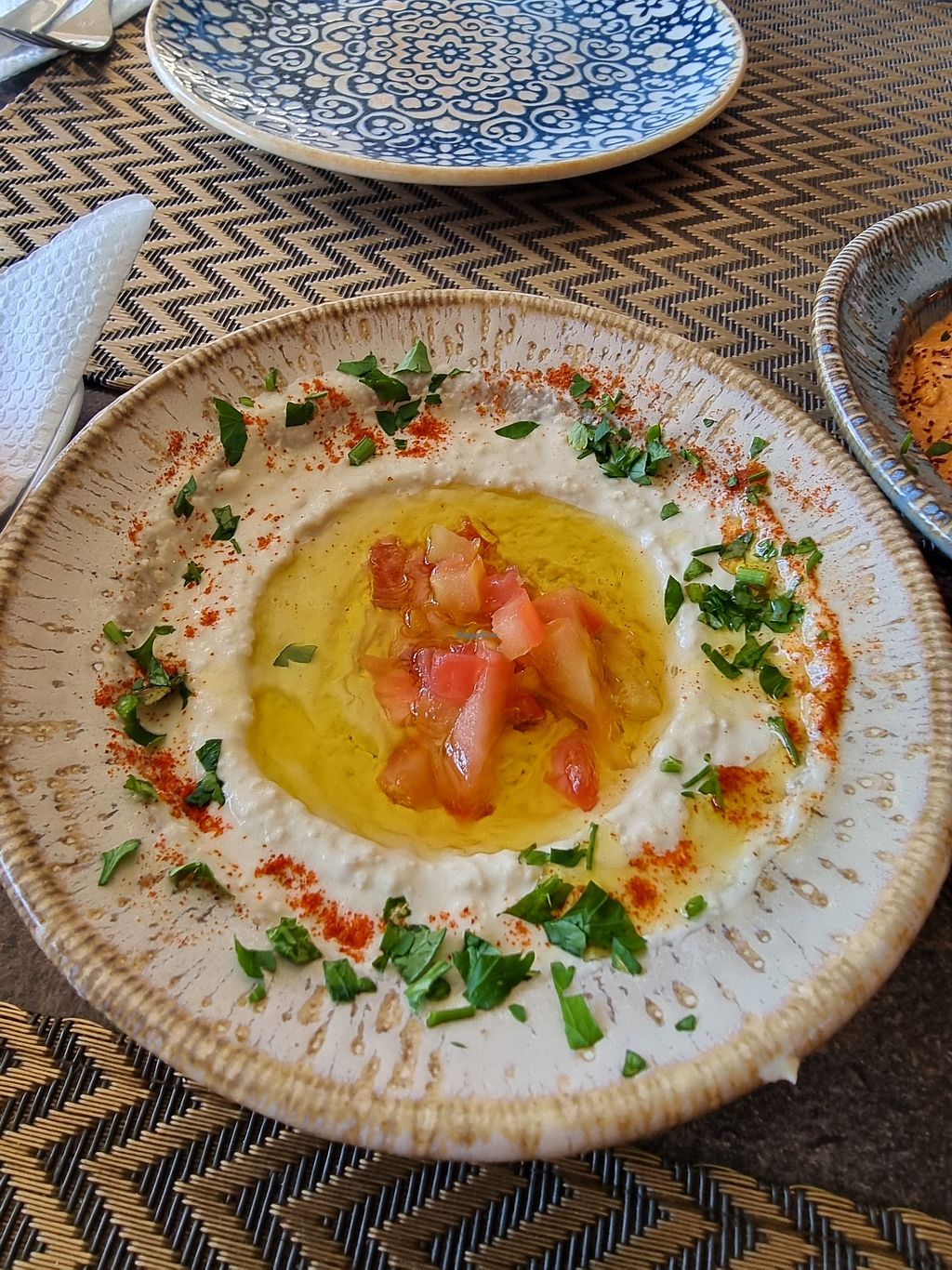 (Cold starter on Lebanese cuisine menu) Hummus: Creamy Chickpeas with …