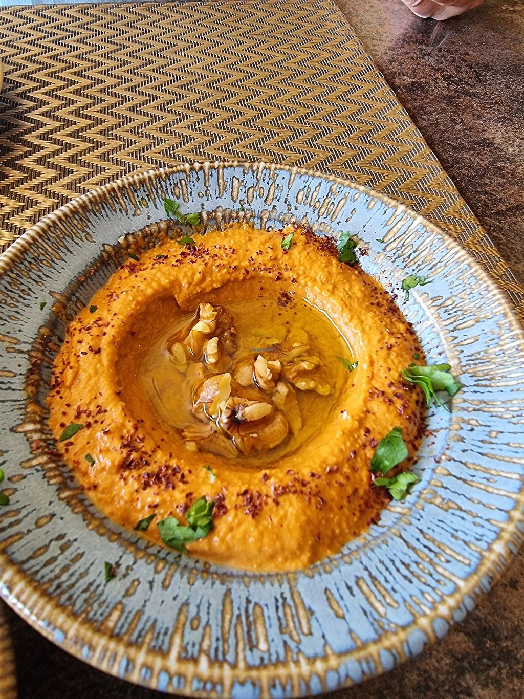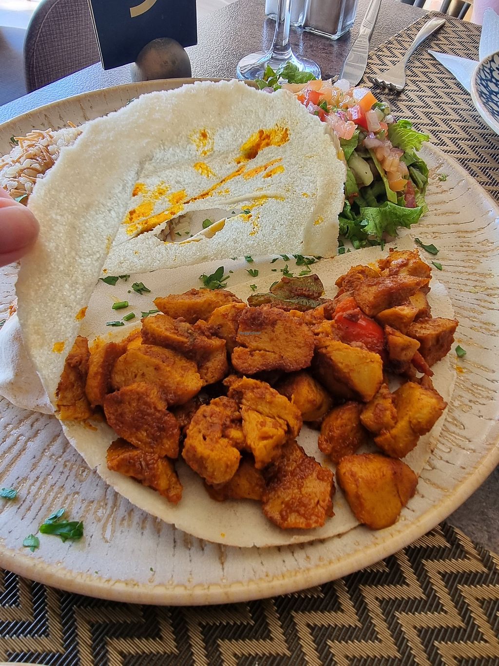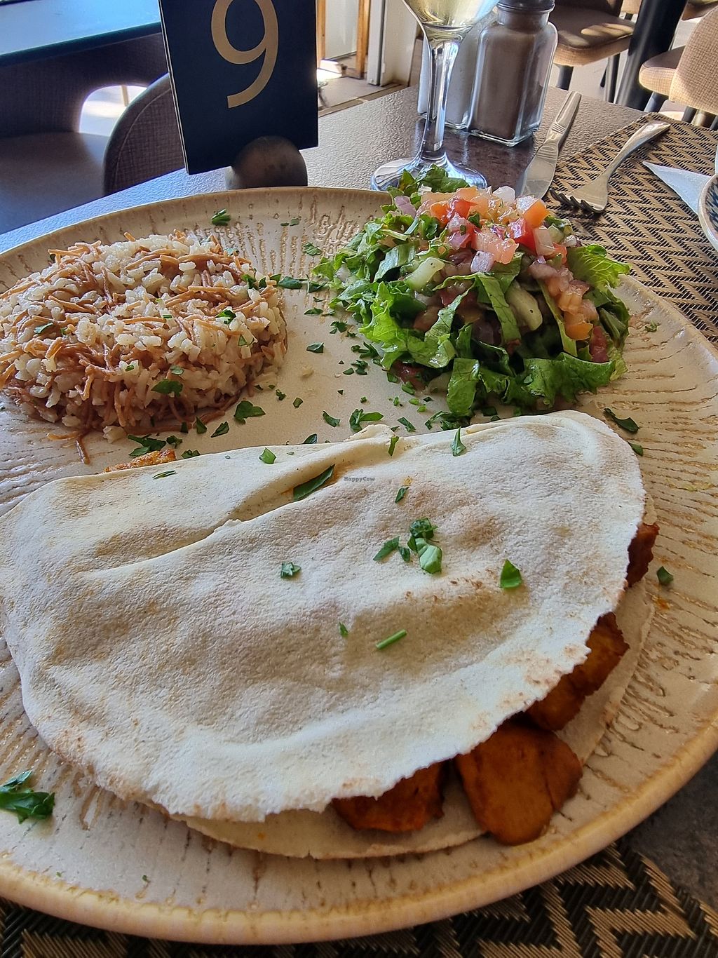 (On the Lebanese cuisine menu) vegan Sharwarma comes with Fattoush (sa…