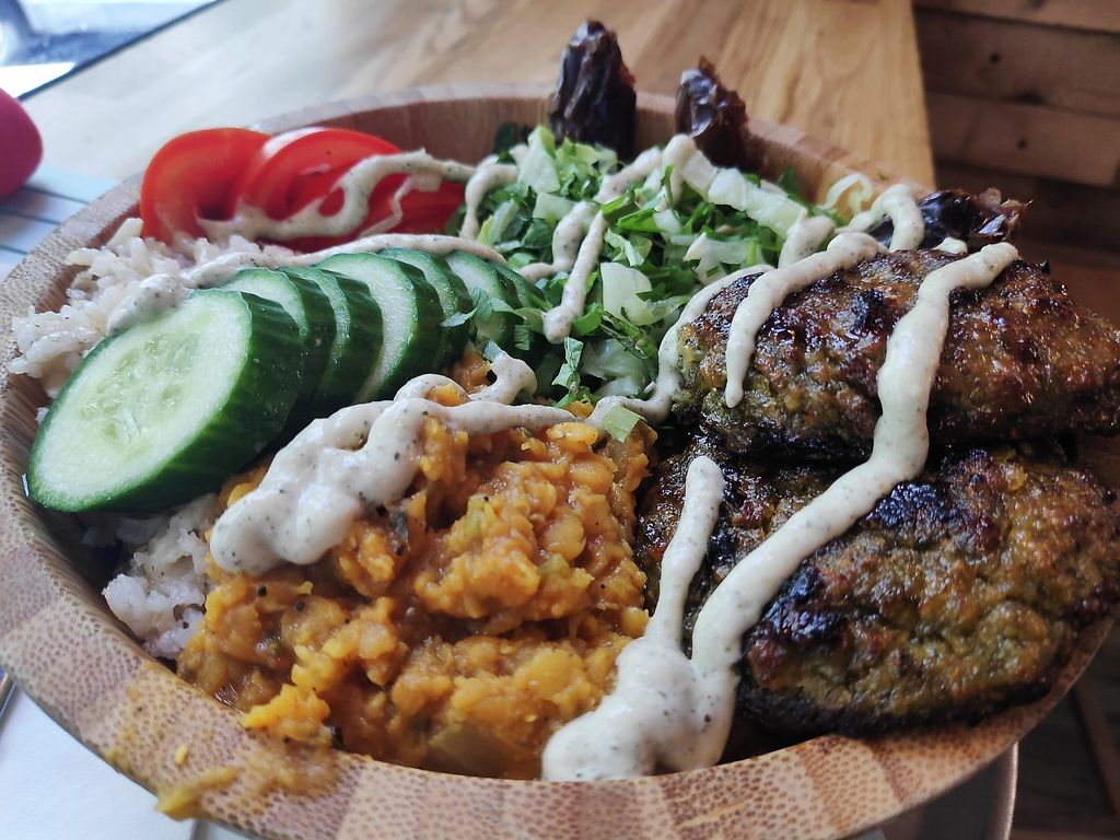 Read moreWe ordered a Buddha bowl with pea and quinoa stew which was excellent. A huge selection of vegetables and everything felt so delicious and nutritious. In addition we took the business with a lentil stew in bolognese, soup, a slice of bread and carrot juice. Also a very satisfying meal but if you come and have to choose do not miss the amazing Buddha bowl. In addition, you can buy a selection of cakes, cookies and other vegan items.