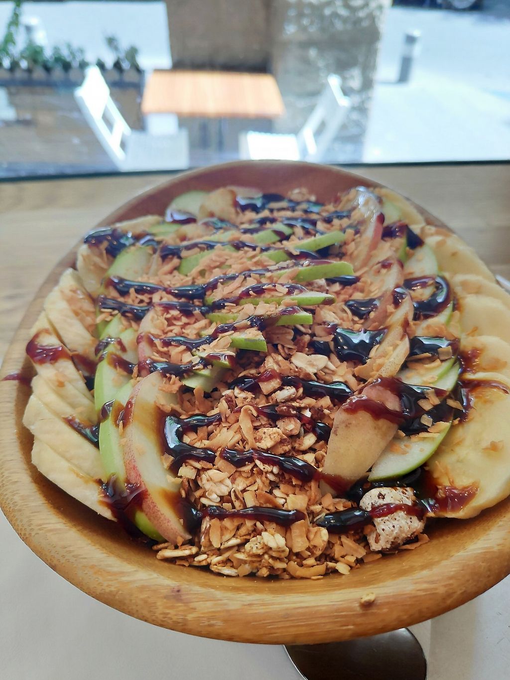 There were sooo many options, we were so confused, but the woman who worked there was really nice and patiant. she let us taste everything and chose for me in the end because I just could'nt decide. They have soups, and all these wholsome bean based stews, and smoothies, really good prices, and it's so nice to sit there. You have to check this place out