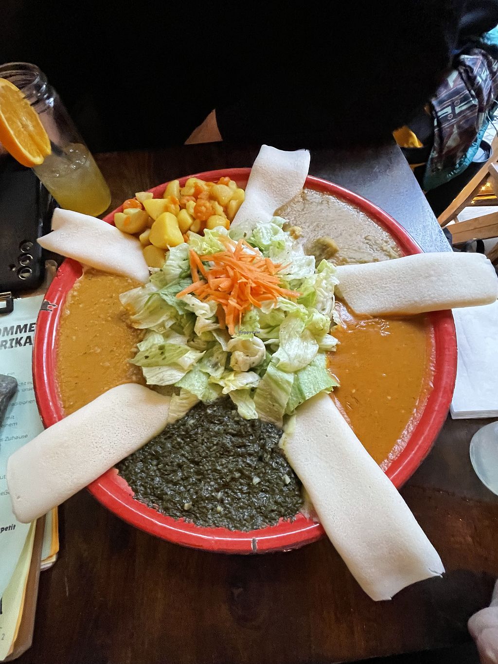 Definitely a nice atmosphere, and the food is certainly good, but this is the Eritrean place I heard about the most in Frankfurt and I think there are a few others are that are slightly better. Still - a very good vegan platter!