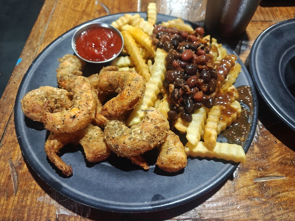 We were very hungry travelers and we ate good here! We had the Carolina popcorn chicken fries, buffalo wings, double bacon cheddar burgers, hush puppies, and BLT’s. All were delicious but I think the favorite was the Carolina popcorn chicken fries. Oh and add cheese to your entree’s side of fries 😋 Tasty vegan cheese is hard to find but this one is a winner!