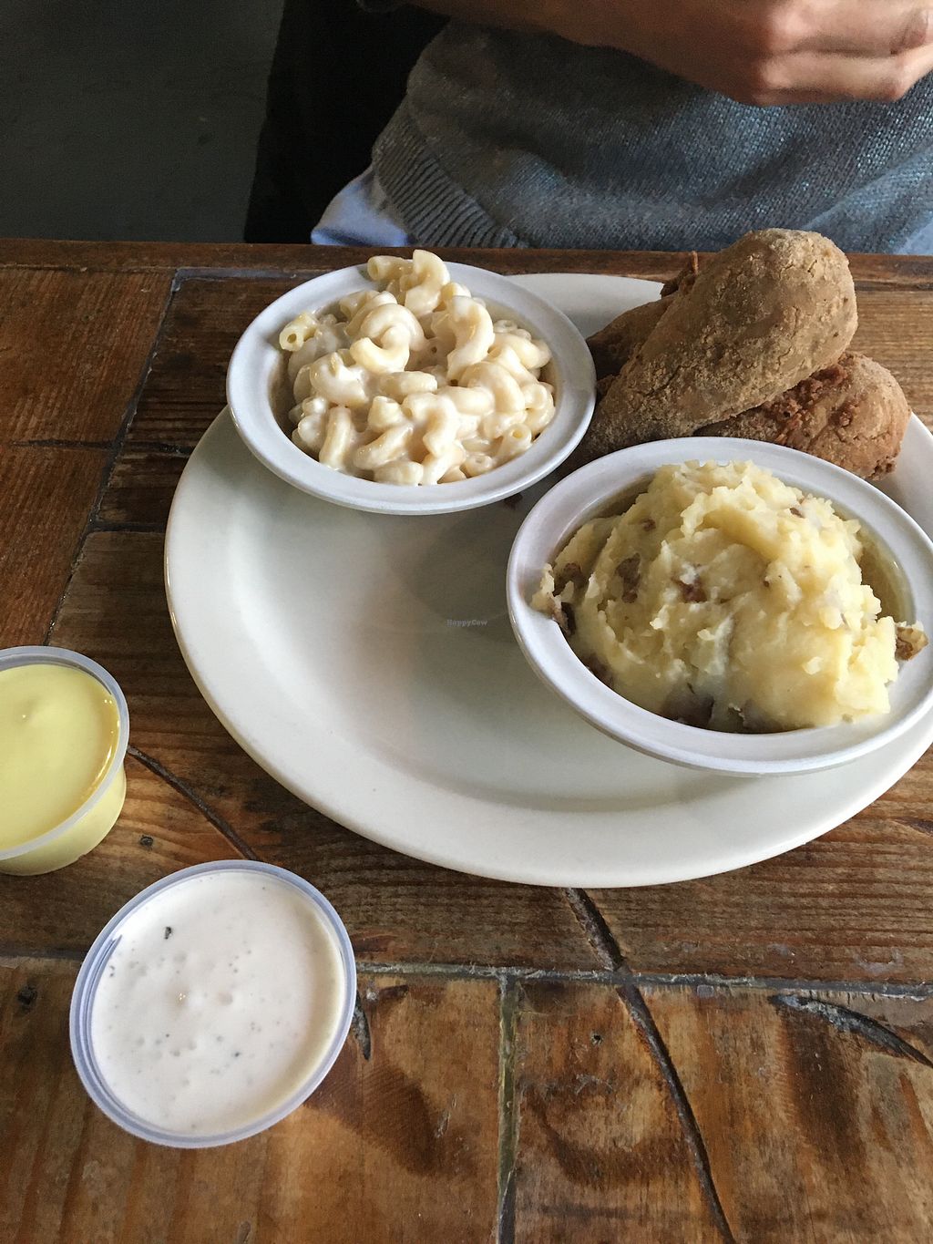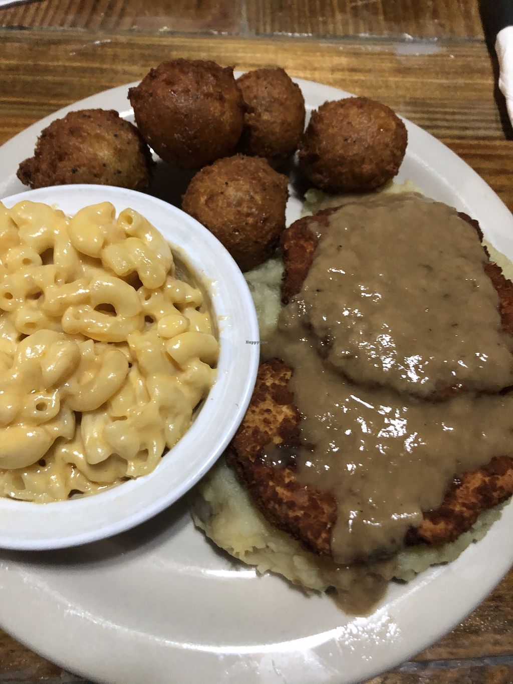 Turkey cutlets on mashed potatoes, Mac and cheese (with both types of …