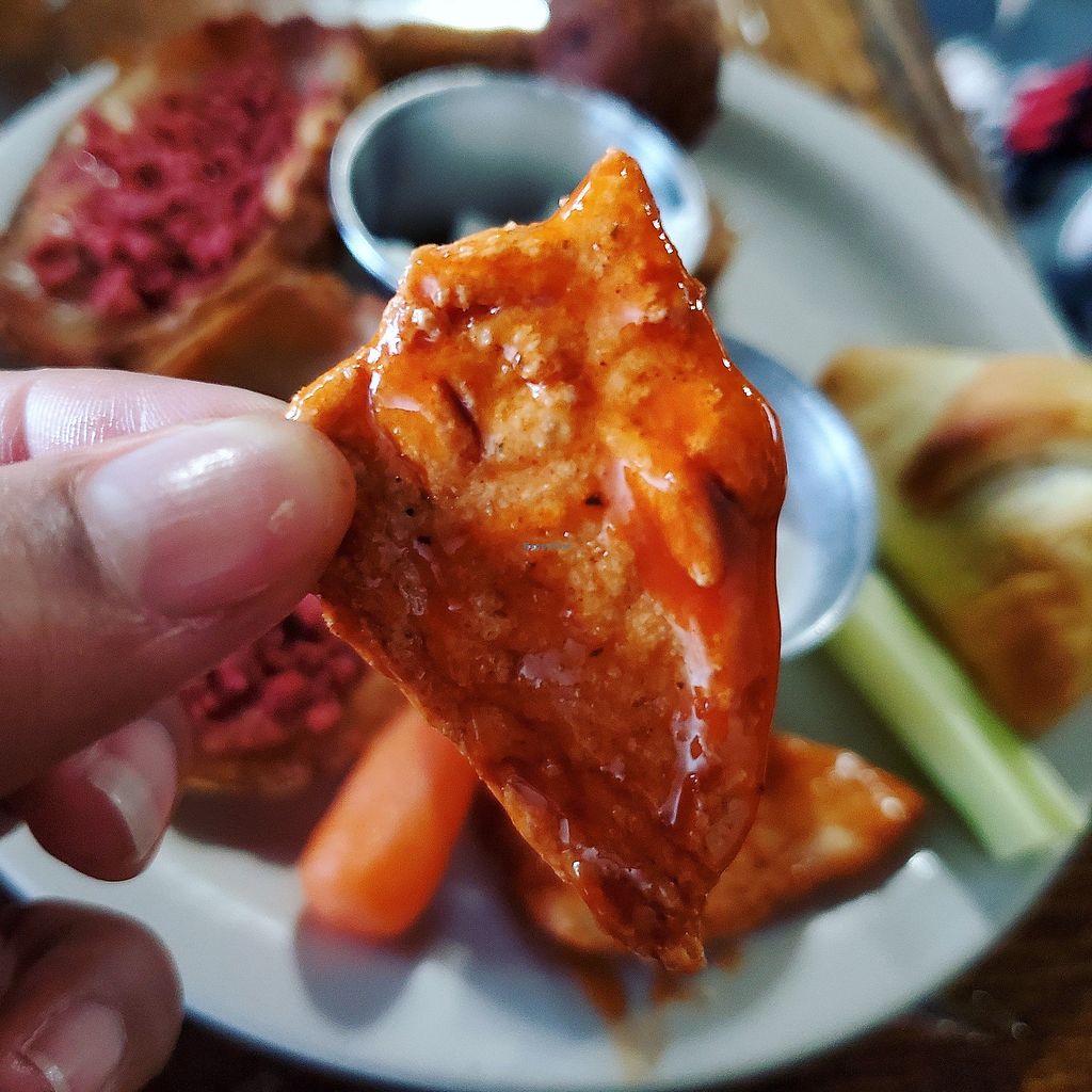 Vegan bbq nachos and we added faux chicken and black beans :)