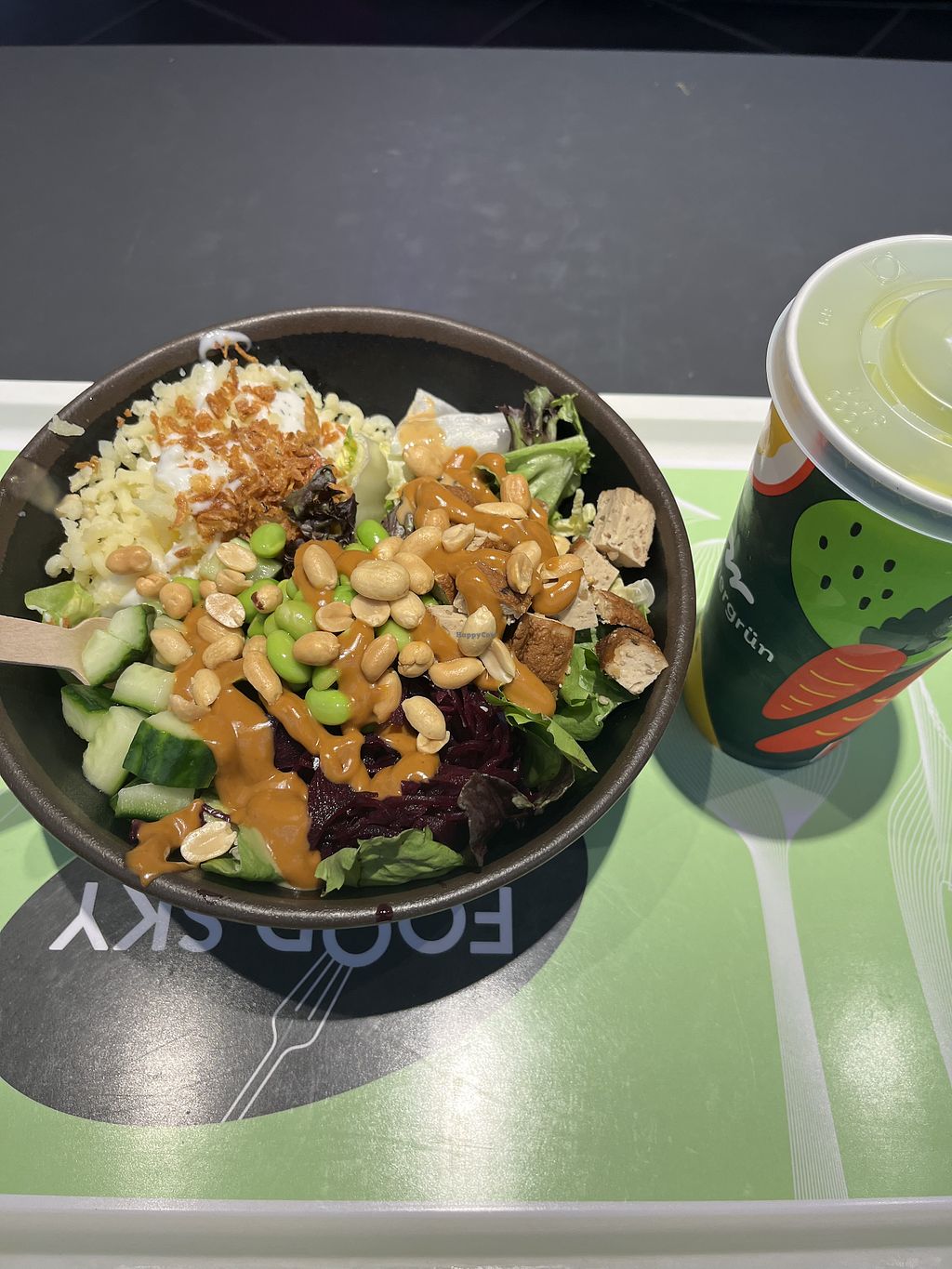 Nice healthy vegan salad bowl options! I recommed the mashed(?) potato version. Also plenty of juice and drink options