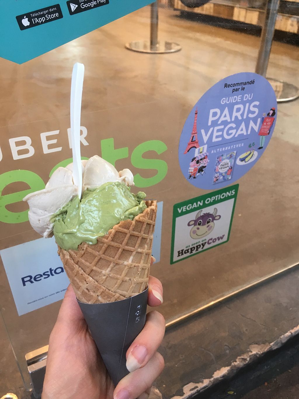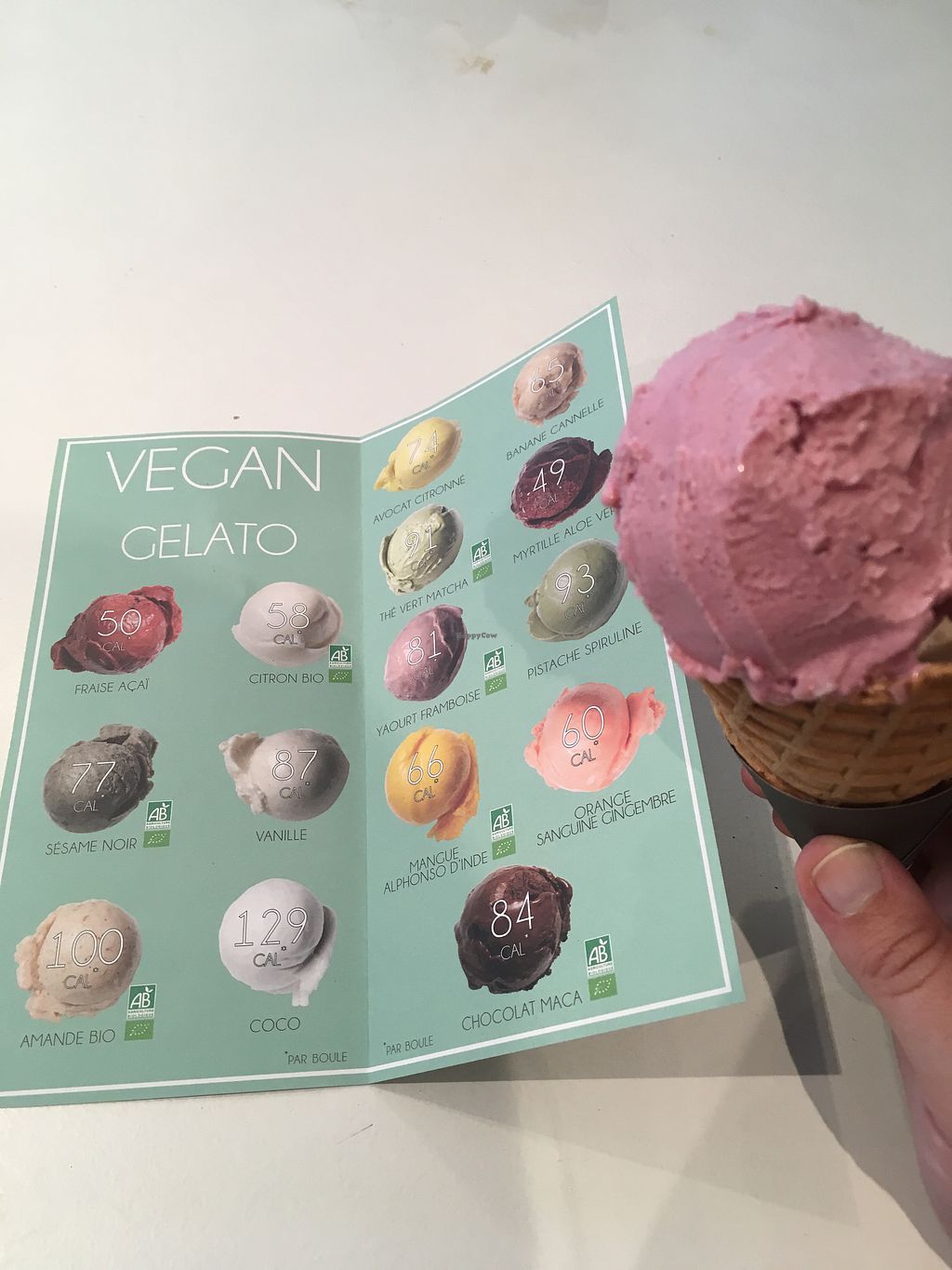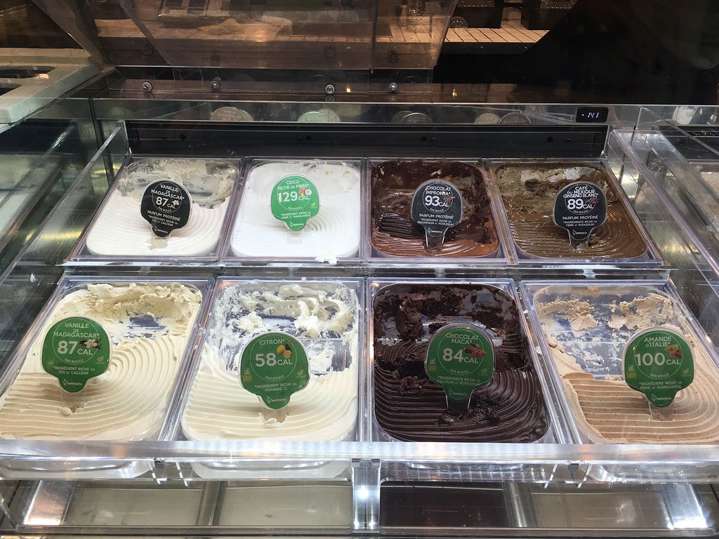 Out of 20 flavours 15 are vegan. All flavours taste good even the most original ones. If I had to recommand some I’d say yaourt framboise and avocat citronné ! It’s the first Time I enjoy vanilla vegan. The wafle is very good too.