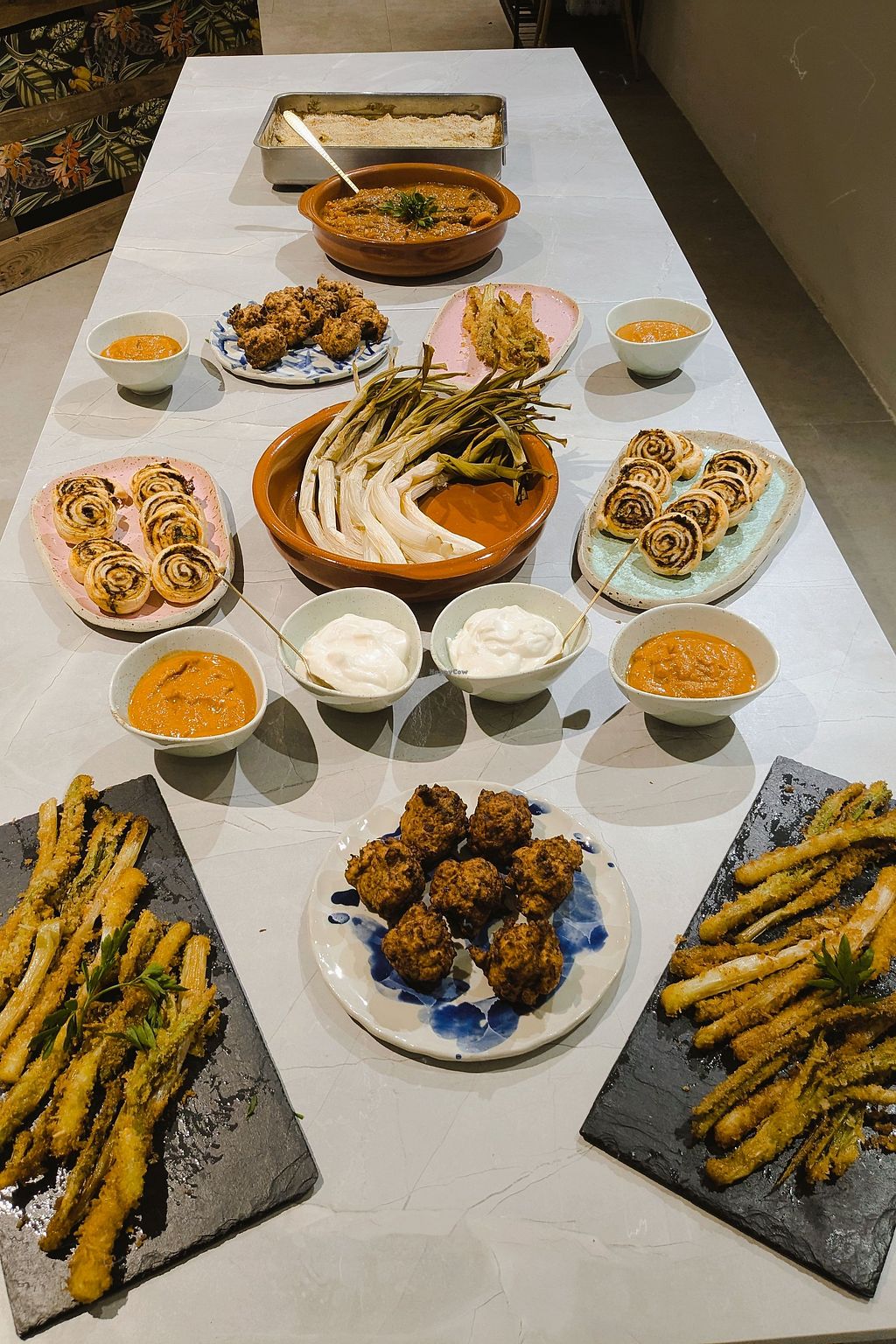 table with all the dishes!