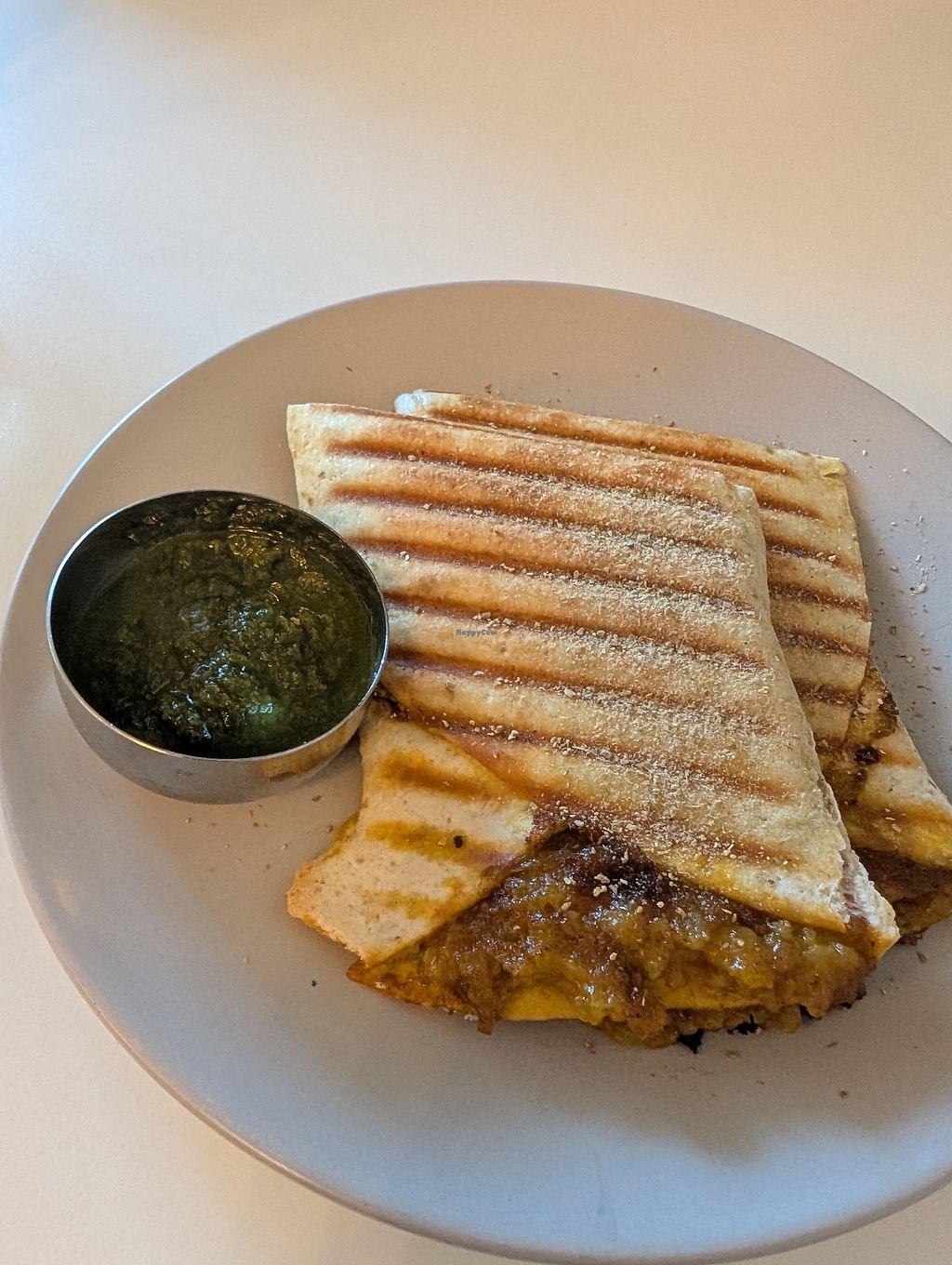 I had the vegan version of the aloo paratha and it was very good. A nice bit of chilli, perhaps a little bit under seasoned beyond that. The pickles provided did help to add a bit of extra taste. The pickle portion looks a bit small but they were happy to refill the pot for me.
