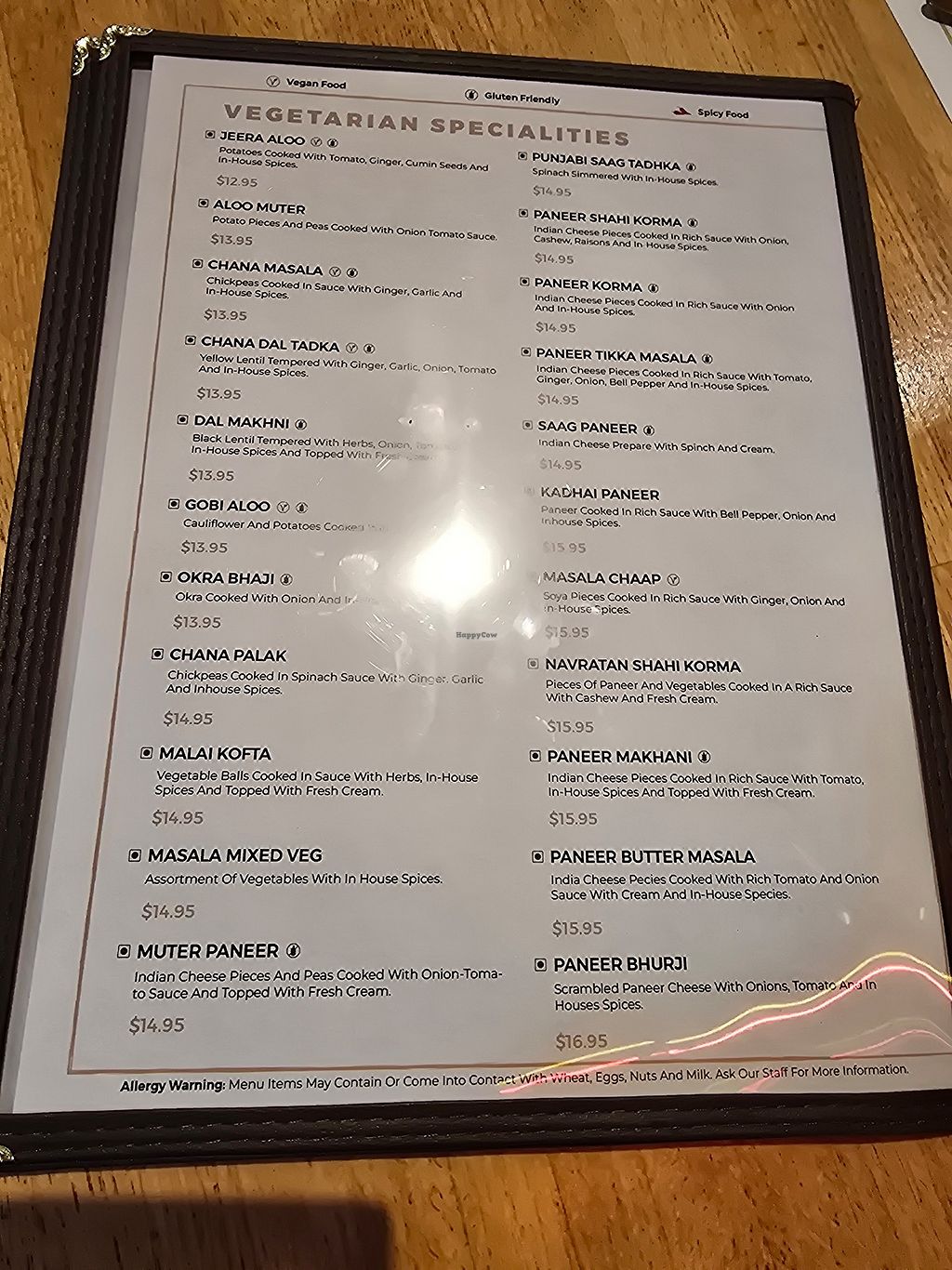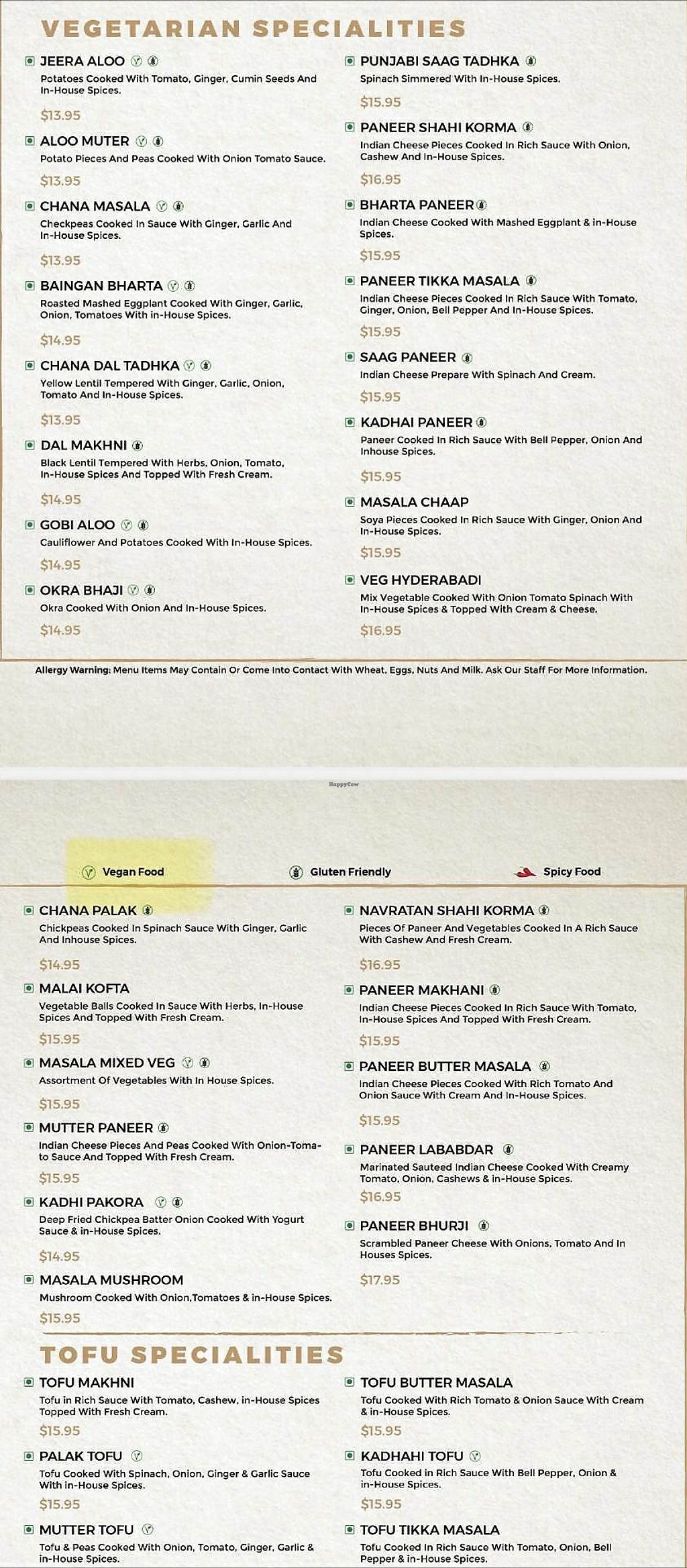 Vegetarian menu