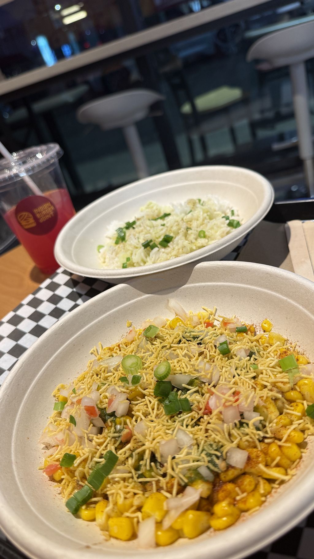 The menu is packed and all vegetarian. Most items are vegan. Indian flavors somehow even for the lemonade! Affordable, fast and they use paper plates, bamboo cutlery and paper straws. Thank you.