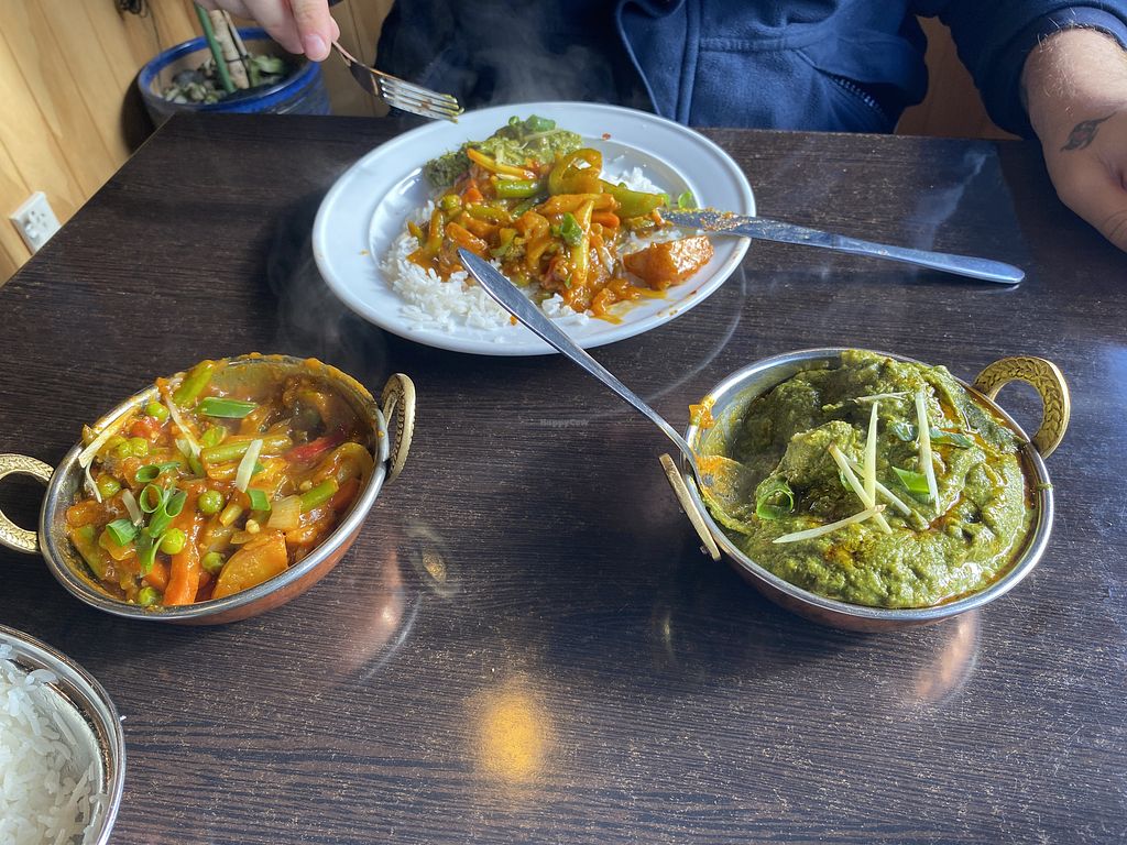 We tried the onion bhajis - nice flavour but over cooked so quite hard in parts. The jalfrezi and saag aloo were both decent mains. The rice was a bit wet, and no alcohol available because no duty manager was on site. I would stop again mostly because there isn’t much else in this town and it was fine overall.