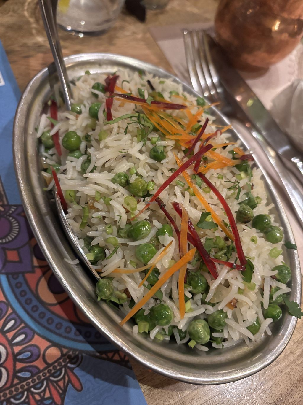 The aloo matar was delicious, more vegan options were available. Staff is very very friendly, they have no trouble explaining which items are vegan and which ones they do and do not recommend. And a plus: theres plenty of choice if you want to pick a nice bottle of wine