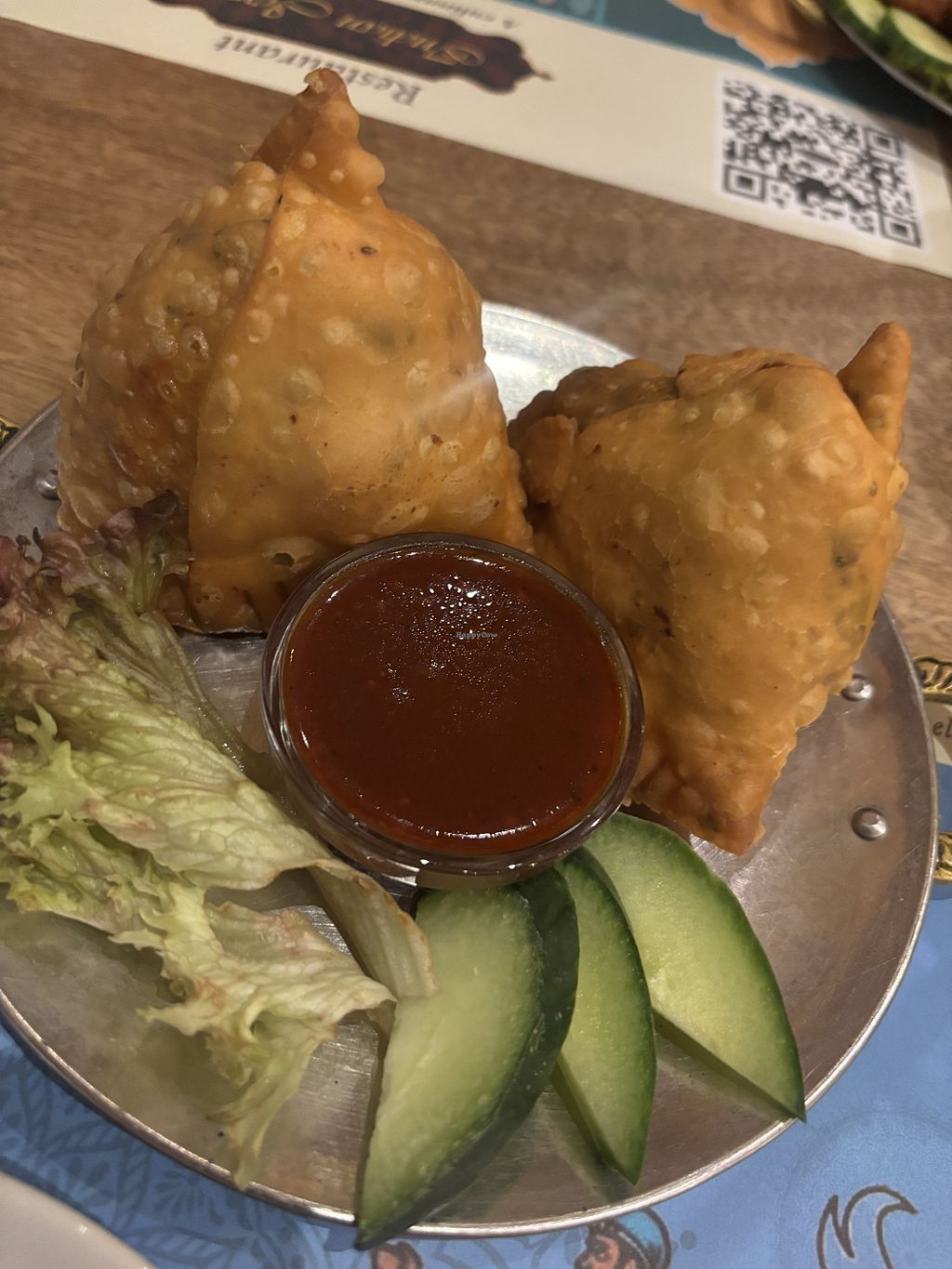 Large restaurant with enough veggie and vegan options. The staff is friendly and very helpfull. We had samosas as a starter and rajma masala. The samosas were big for a starter and very tastefull. And I liked the masala. Good portion and enough flavours