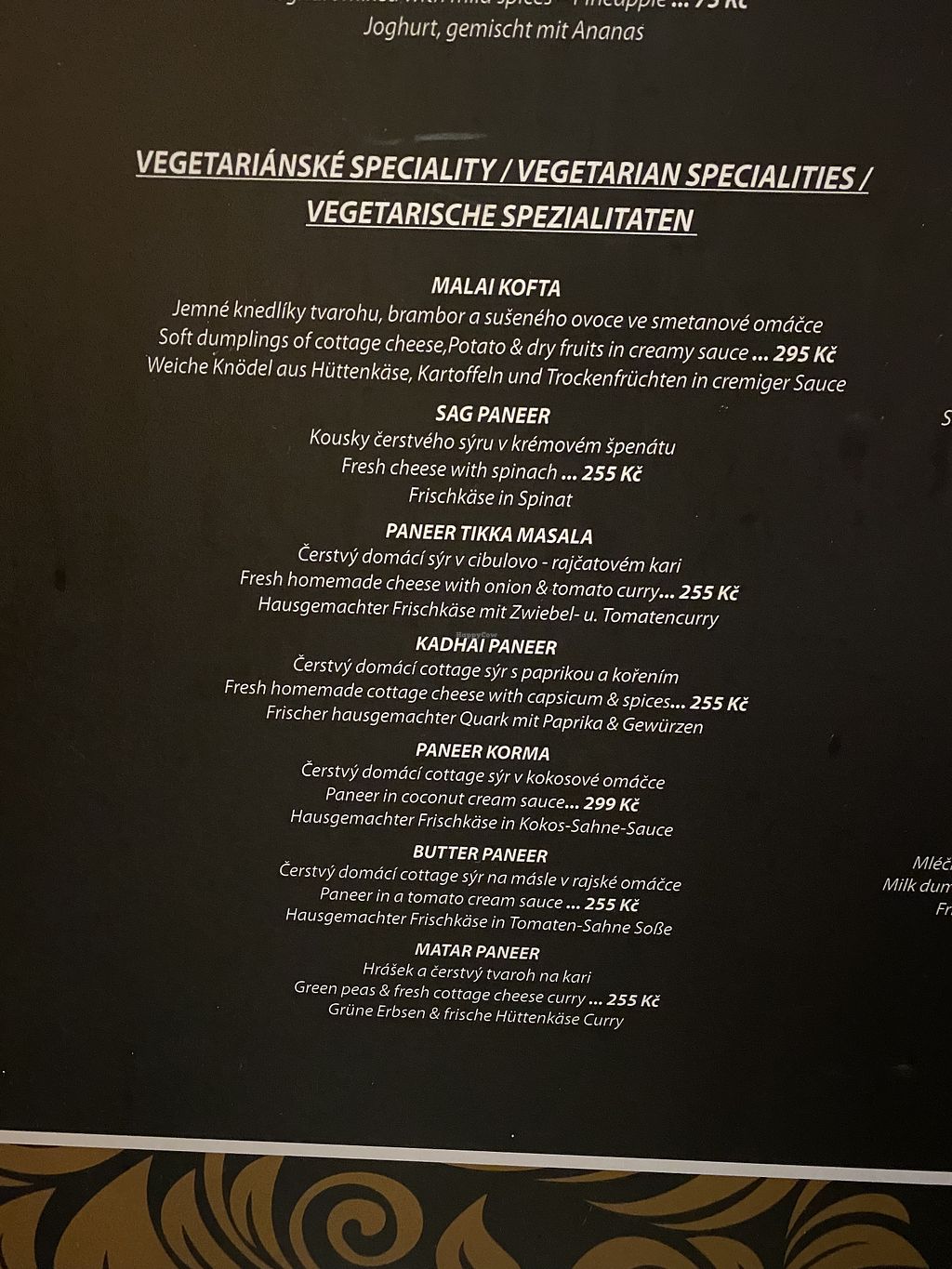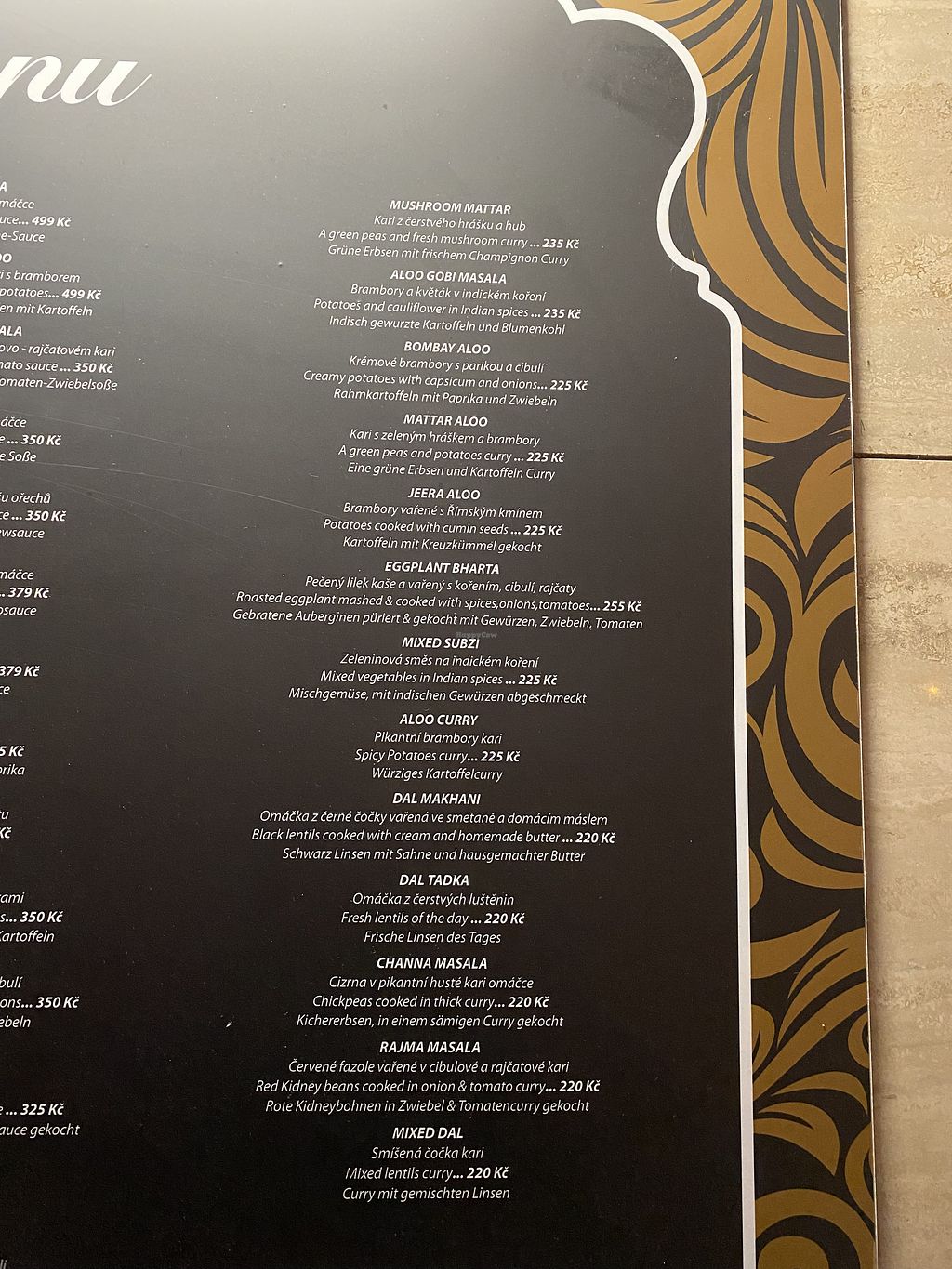 Hanno una sezione sul menù con piatti vegetariani ma in realtà quelli vegani non sono ben segnalati e chiedendo al cameriere non ho potuto scegliere tra molti piatti. Inoltre l’ho trovato decisamente caro rispetto alla media di Praga.