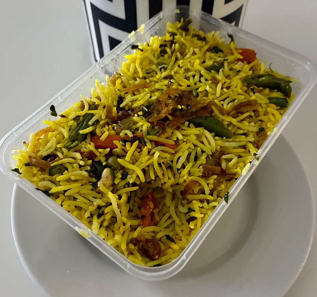 Vegetarian restaurant offering naturally vegan and veganizable dishes (specify no dairy/ghee), including items like crispy corn, dal dhokli with rice (wheat dumplings in lentil curry), gobi manchurian (fried cauliflower in Indo-Chinese sauce), vegetable fried rice, dal khichadi (rice-lentil porridge), vegetable pulao (spiced rice), and more. Open Mon-Sun 8:00am-11:00pm.