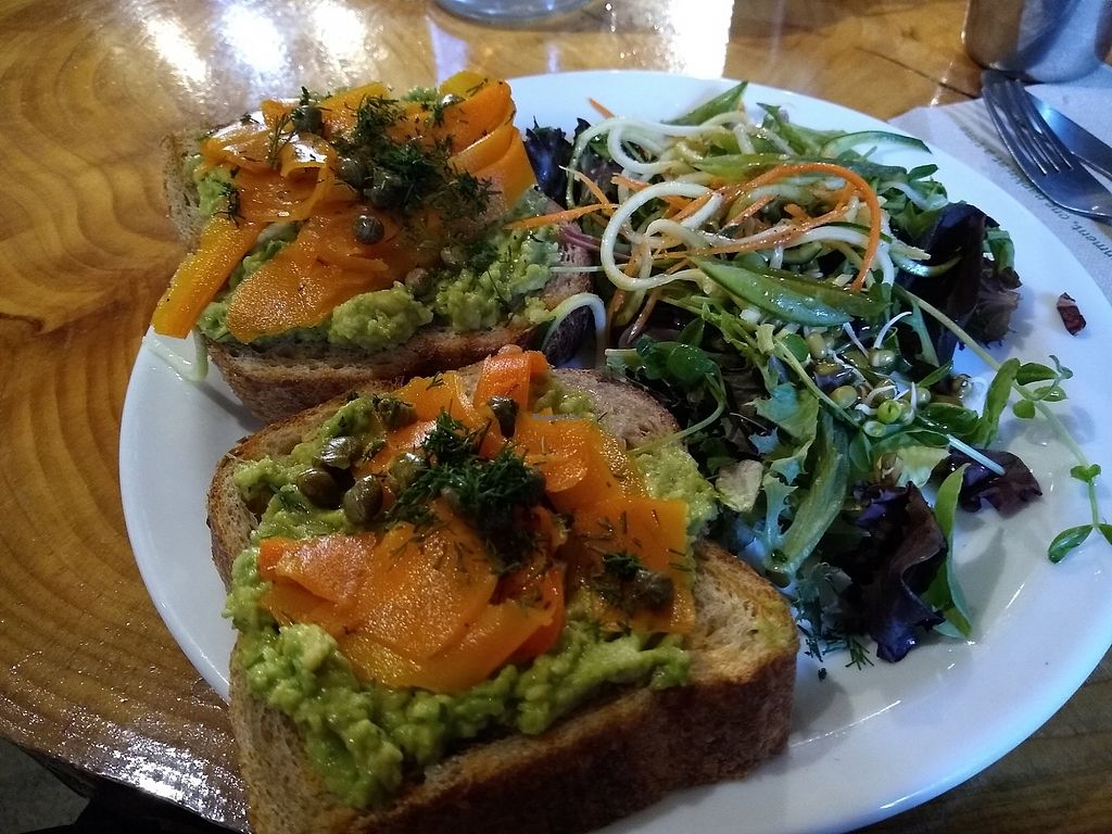 Well I’ll be! #Raw vegan eats in Vancouver! This vegan cafe has plentiful #rawfood dishes, plus cooked vegan Ukrainian dishes and get this - British High Tea by reservation from 3-5p every day. And they use avocado like Savory frosting. So ... APPROVED! Chat with Kyle on staff - he’s golden.