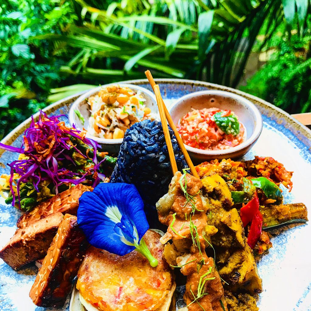 Wow wow wow! After being in Nusa Dua for 4 days with very limited vegan options, I was so happy to find this amazing store / restaurant in Ubud. A true all-vegan menu with super fresh ingredients and nothing artificial. The “spring rolls” (Indigo Gulung) have the most beautiful presentation I’ve ever seen with edible blue flowers and blue noodles (where have these been all my life??!). But the star of my meal was definitely the Mie Mushroom Wijen which was perfectly flavored mushrooms over a bed of homemade noodles tossed in a peanut sauce with cilantro and veggies. Gahhhh so good - I practically licked the plate! THANK YOU THANK YOU Indigo Kitchen!! Every vegan or vegan enthusiast needs to go here if you’re in Ubud!