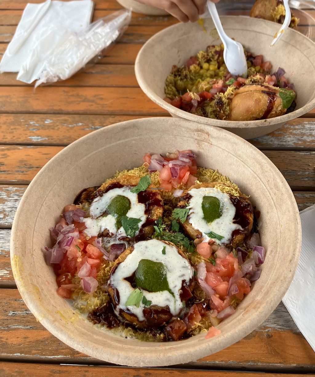 Great concept and love the outdoor area that is shared with other food spots and the brewery. Had the corn behl which was vegan and delicious and a big portion.