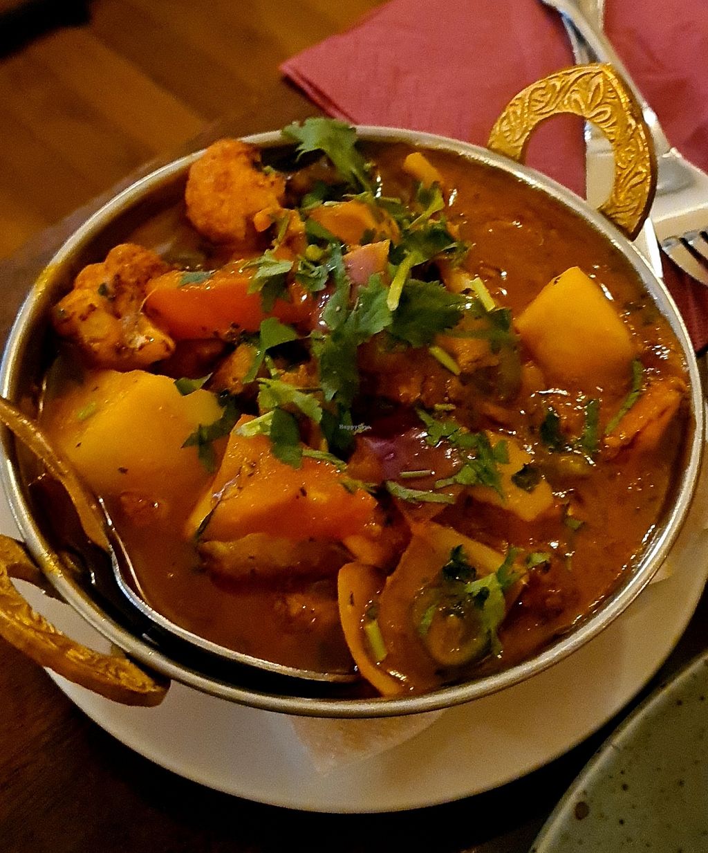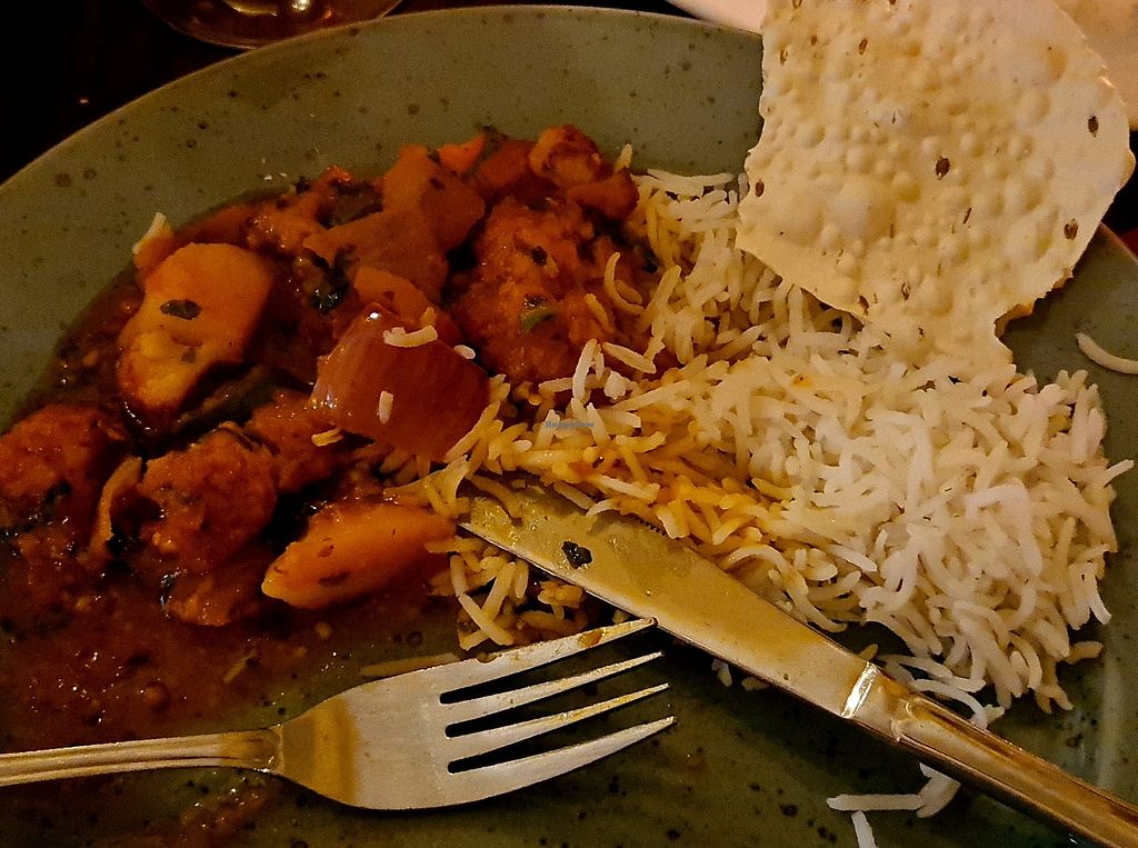 We were here on a Saturday night and there weren't many people, apart from us there were two other parties, but after reading google reviews it seems that lunch is their big thing. There were a dozen vegetarian dishes, half of which were vegan, such as aaloo gobhi, channa masala and dahl. Unfortunately they didn't have vegan naan so I ordered papadam instead. The food was tasty and we would love to go there again!