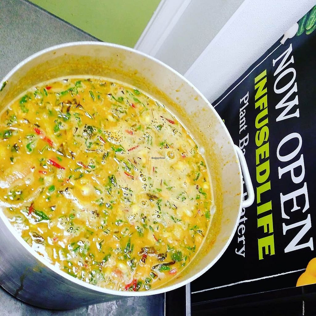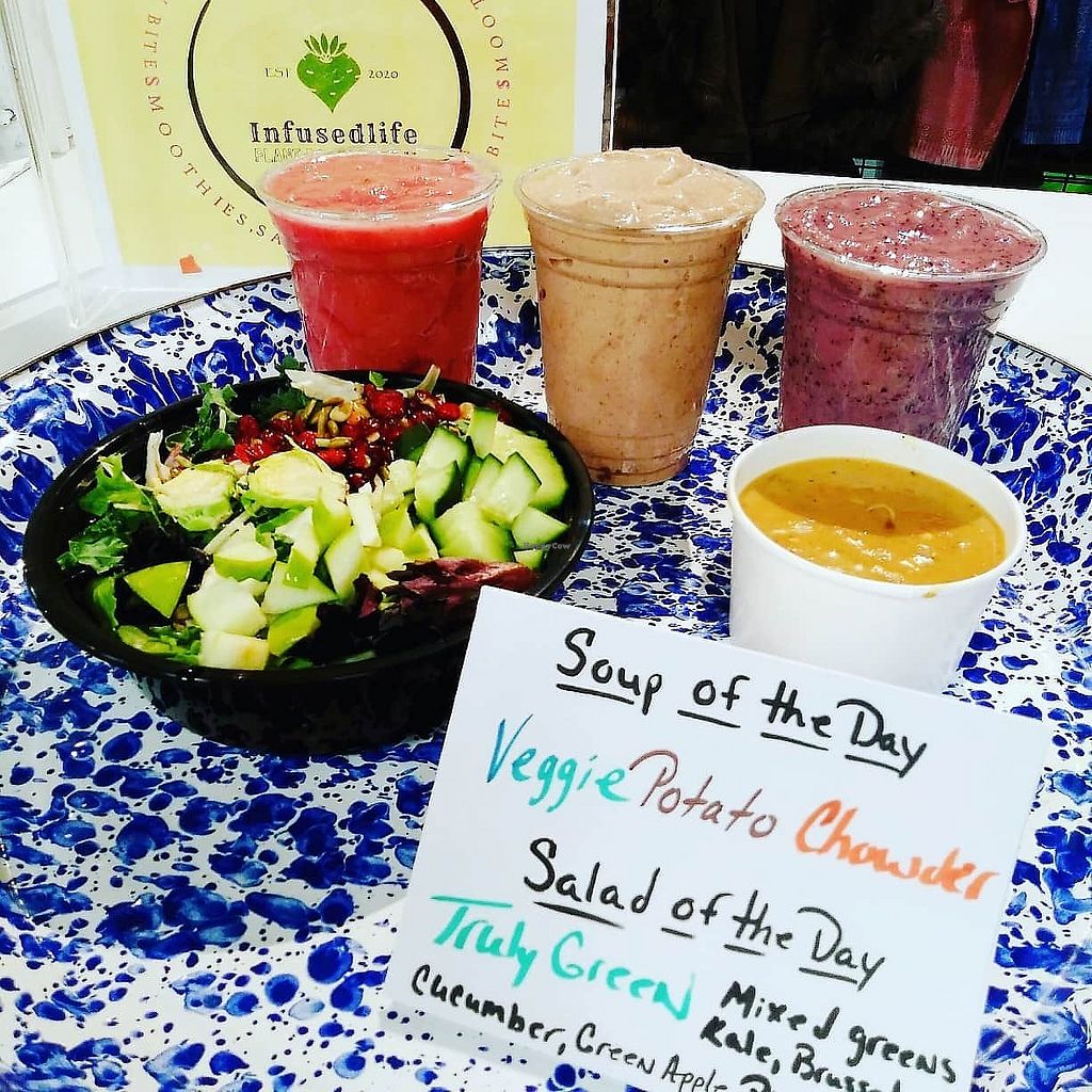 I found Infusedlife Plant-Based through Happy Cow, and I'm sure glad I did. It's an "emporium" in that they sell an eclectic range of products, and they have a small kitchen to produce some very wonderful, homey, delicious plant-based food. Good choice for takeout or delivery, or I think maybe 2-3 people could eat in at the small countertop; not sure if that's available now or not. The food is excellent. Even the meat eaters among us really liked what they got. I had the Moroccan lasagne special and it was outstanding, very flavorful and satisfying, much better than other vegan lasagnes I've had (or made). It had that creamy quality that is very hard to achieve with non-dairy cheeses. Five stars for sure just for the lasagne. Others in our group (which included both vegetarians and carnivores) had jackfruit tacos, crispy spring roll salad, and Thai and Mexicali flatbread pizzas -- all excellent, everybody really enjoyed their food. (Note the pizzas do bring some spicy heat. Also they didn't have burgers ... not sure if that's always a limited offering or what, but you should ask before you get your heart set on a burger.)