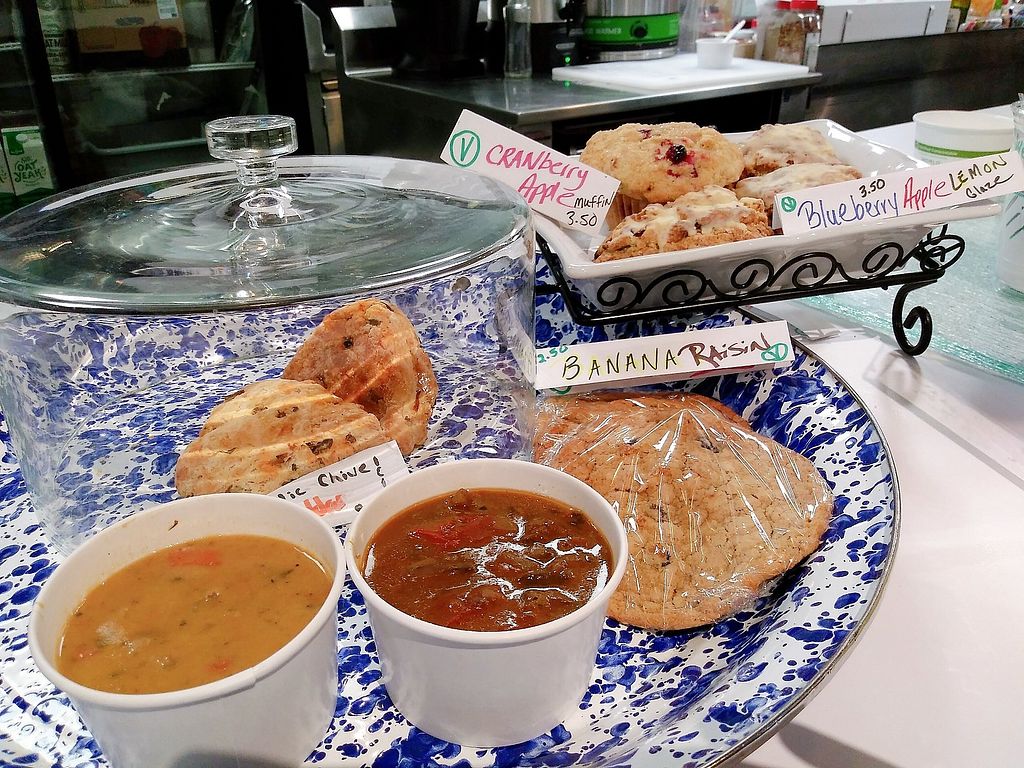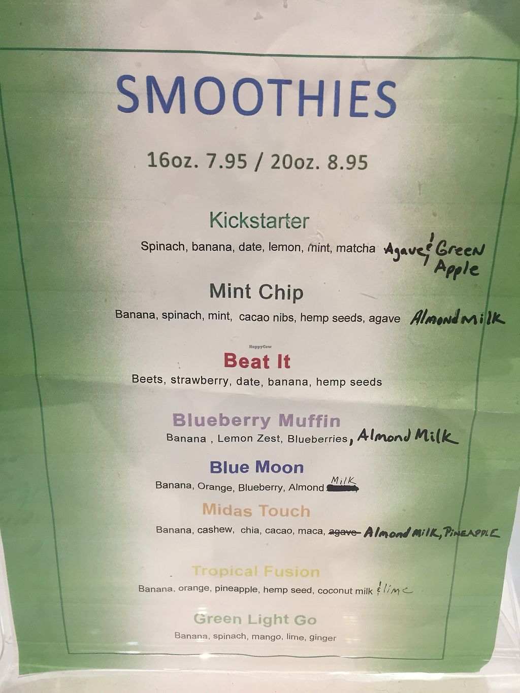 I loved the Midas Touch smoothie but be aware whey protein (not vegan) is a protein powder option. The woman who owns the business is very nice! There are also soups and salads available. I loved the spicy jerked chickpea salad!