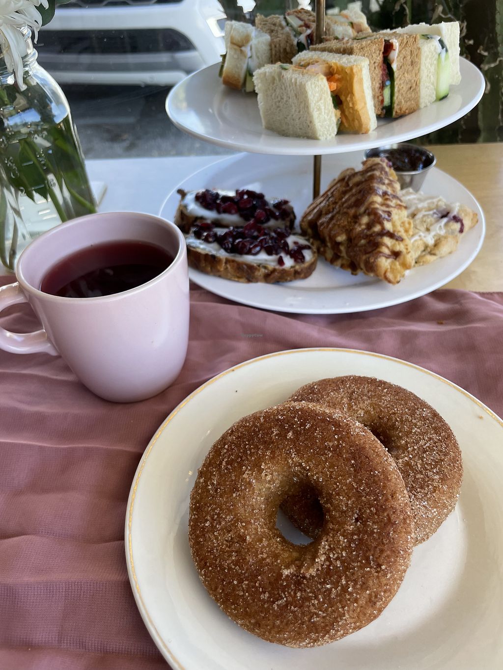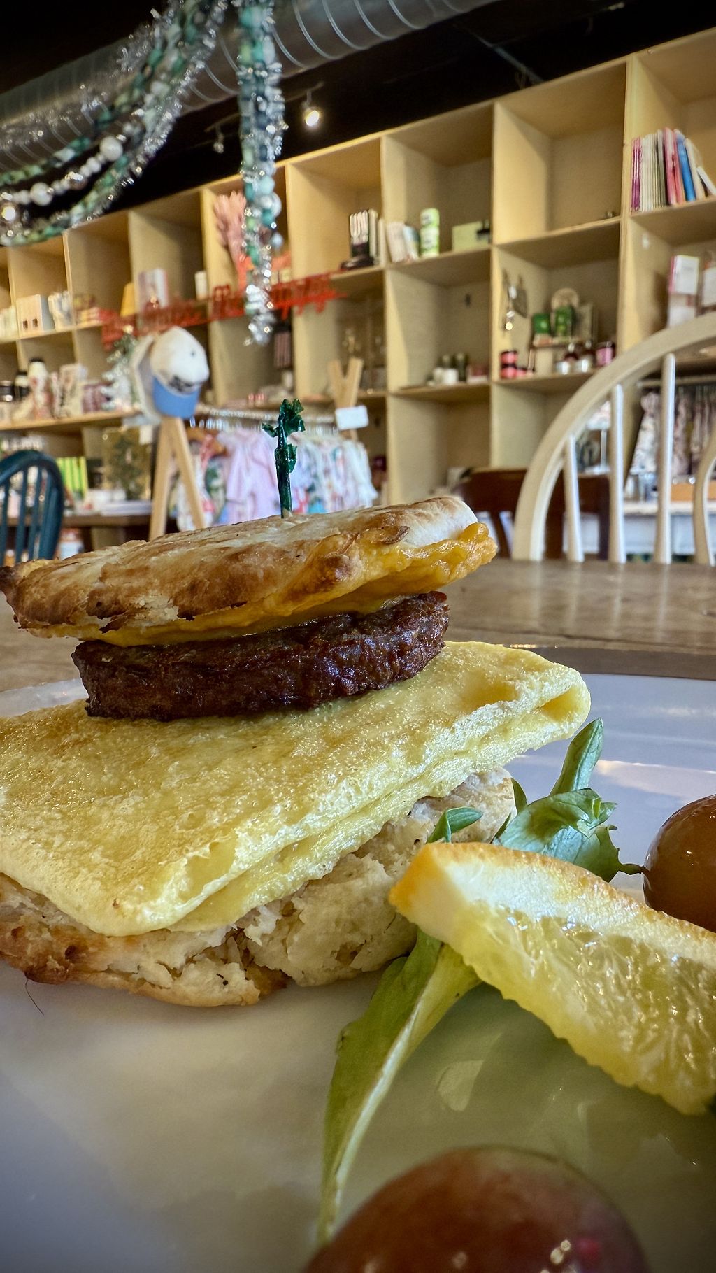 Loved this very fantastical tea spot in Orlando area. It’s an odd playful mix of cafe, bakery, novelties presented like a ferry castle. The literature and novelty shop is huge and again is an odd playful combo of God, mommy, patriot, love and simple pleasures with a dash of humor. There’s indoor and outdoor seating. I believe this is in the heart of Scientology land. Oh, the food! I loved the açaí bowl as it was similar to what Brazil serves in terms of sweetening (not sweet!). The rooibos lavender elderberry tea was excellent. The gf Ⓥ vanilla sprinkle donut was okay and just ridiculously sweet for me (anything with powdered sugar is going to get the same review from my pallet). The breakfast sandwich was simple, very small egg patty and meet replacement product but the bread it was on was superb. Will go back!