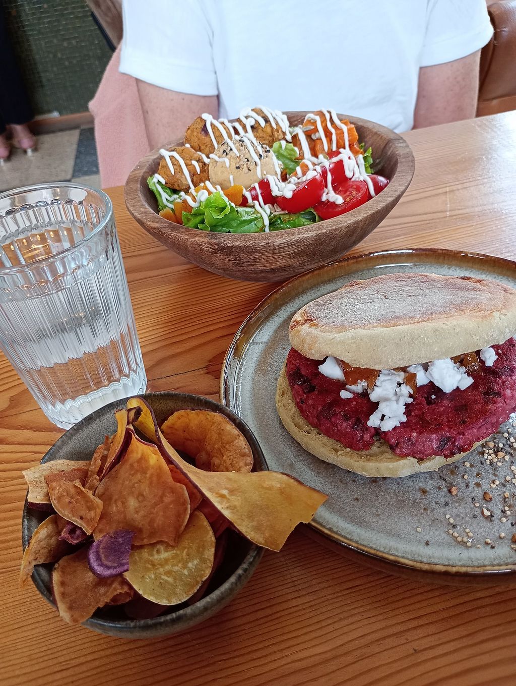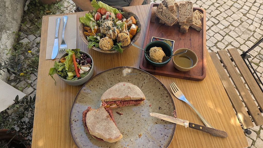 Bom ambiente e decoração. No entanto, apenas apropriado para lanche ou refeição muito leve. Sem flexibilidade para fazerem alterações aos pratos. Não tem sopa. Hambúrguer de beterraba bastante básico e com pouco sabor, apenas acompanhado de uma amostra de salada. Opção de queijo vegan disponível com preço adicional mas de qualidade e sabor sofríveis. Panquecas de maçã assada bem conseguidas. Boa variedade de bebidas, único local em Tomar onde encontrámos kombucha.