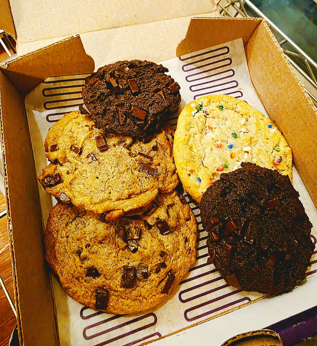 This cute little cookie bakery has vegan cookies and vegan ice cream! The cotton candy ice cream is something I'll crave from now on. They also sometimes have a seasonal vegan cookie that's stuffed with delicious filling. I also love the staff! Everyone is so friendly and its open late. Good place to stop by and get some sweet snacks.