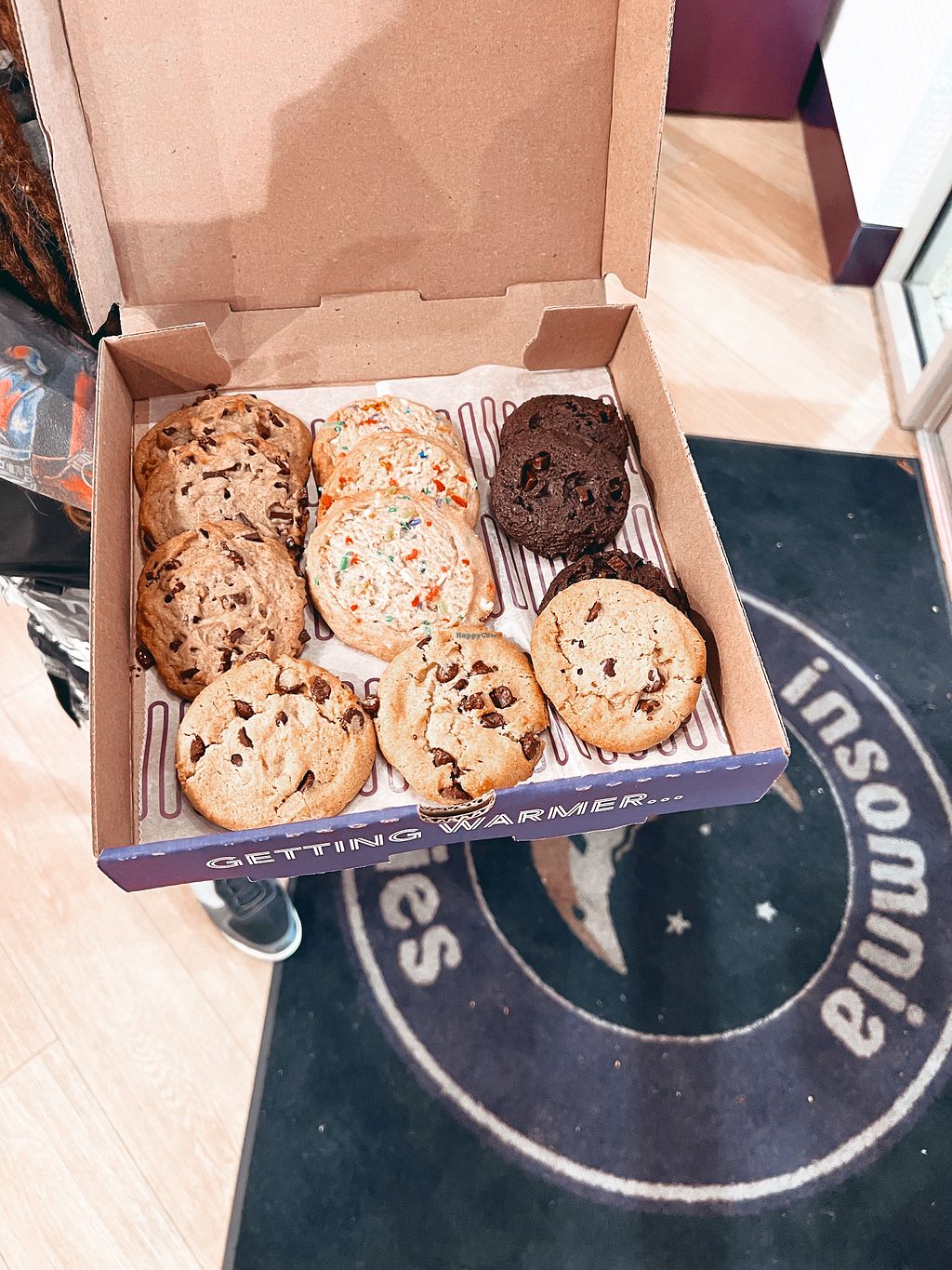 the cookies were sooo warm when we got them it literally was like cookie dough in the middle. sooo good. did not taste vegan at all literally some of the best cookies i’ve ever had
