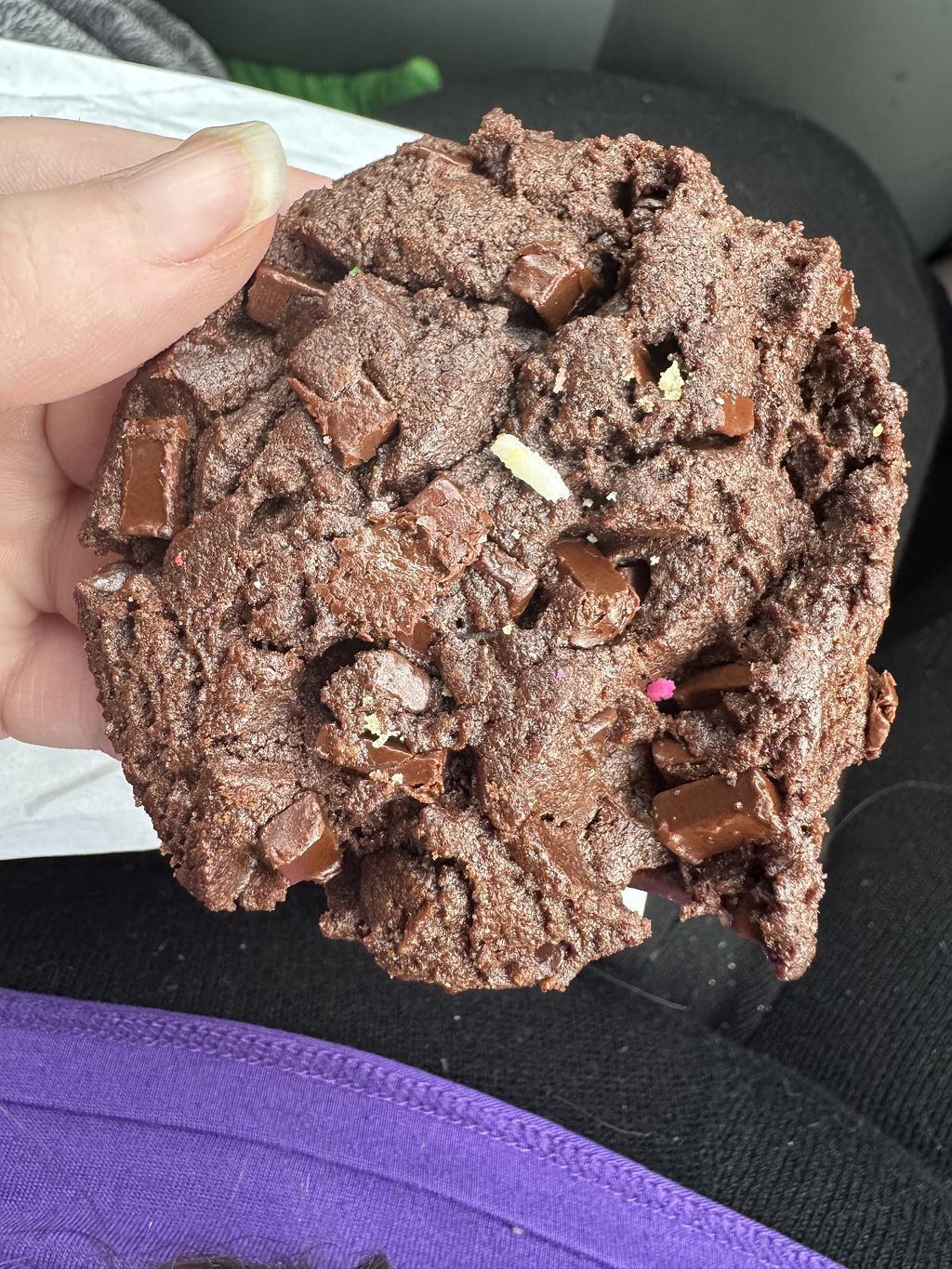 They have 3 vegan cookie options. He got the birthday cookie and I got the double chocolate chip cookie.