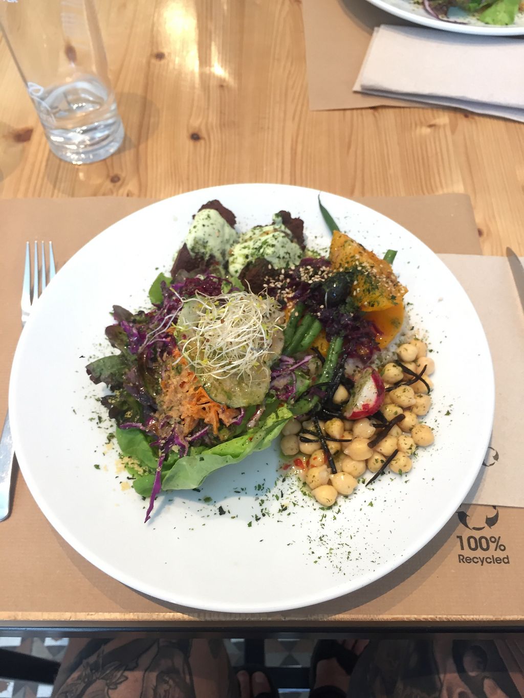 Plato de garbanzos, falafel, ensalada y calabaza al horno.