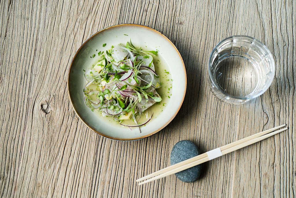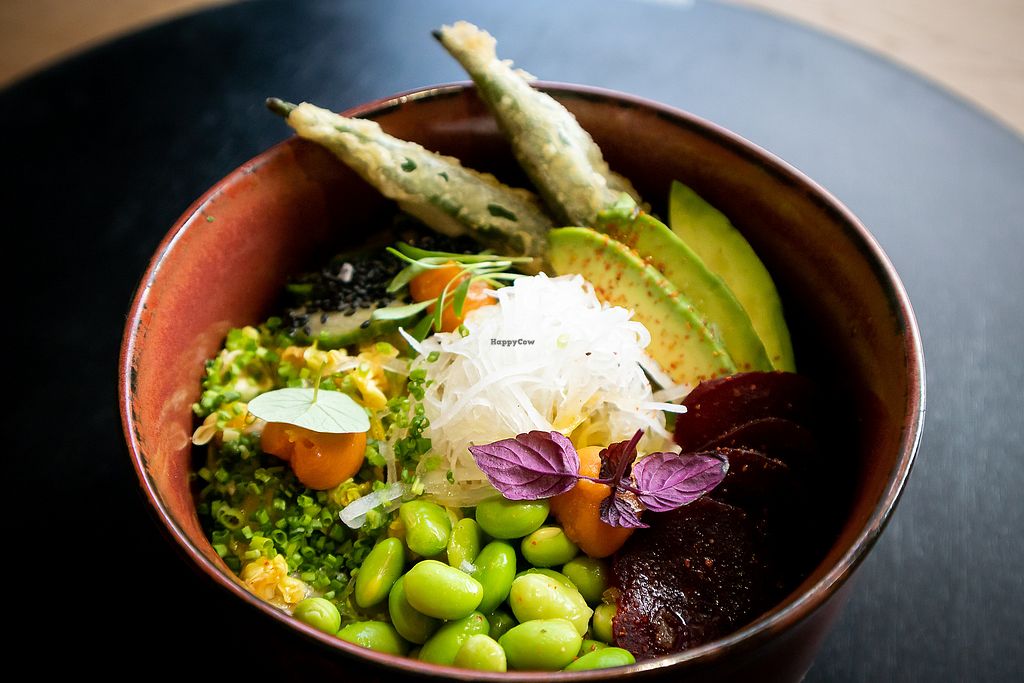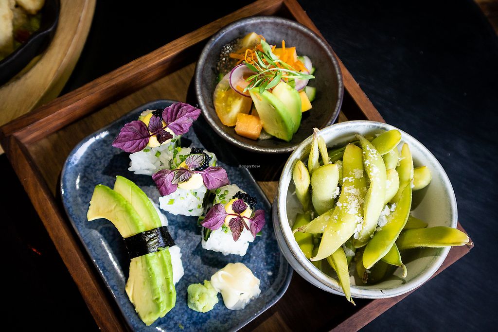 Serves meat, vegan options available. Upscale restaurant in a hotel serving Japanese and Latin American dishes. Vegan choices are labeled and include a chef's choice tasting menu, edamame, two types of nigiri, a variety of maki rolls, soups, and barbecue-miso flavoured char-grilled tofu. Open Mon-Sat 18:00-22:00. Closed Sun.