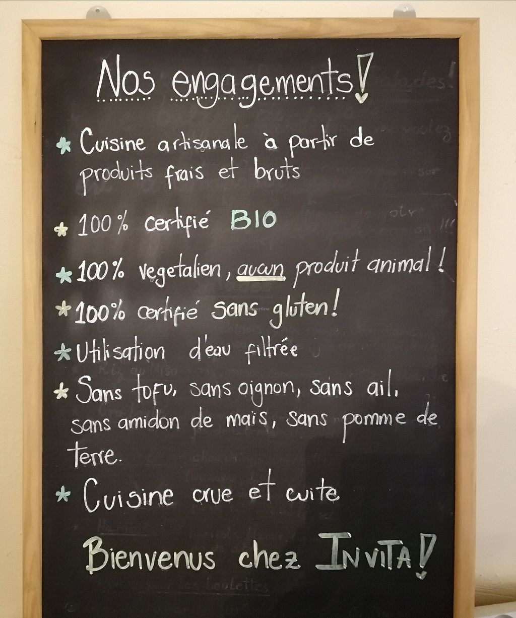 Organic, vegan and gluten free restaurant. Offers dishes including pancakes with vegetables and falafel, burgers, pizza, lasagna, homemade drinks, kombucha, kefir, lemonade, vegetable and fruit juices. Previously at 24 rue de Paradoux. Confirmed closed per owner May 2019.