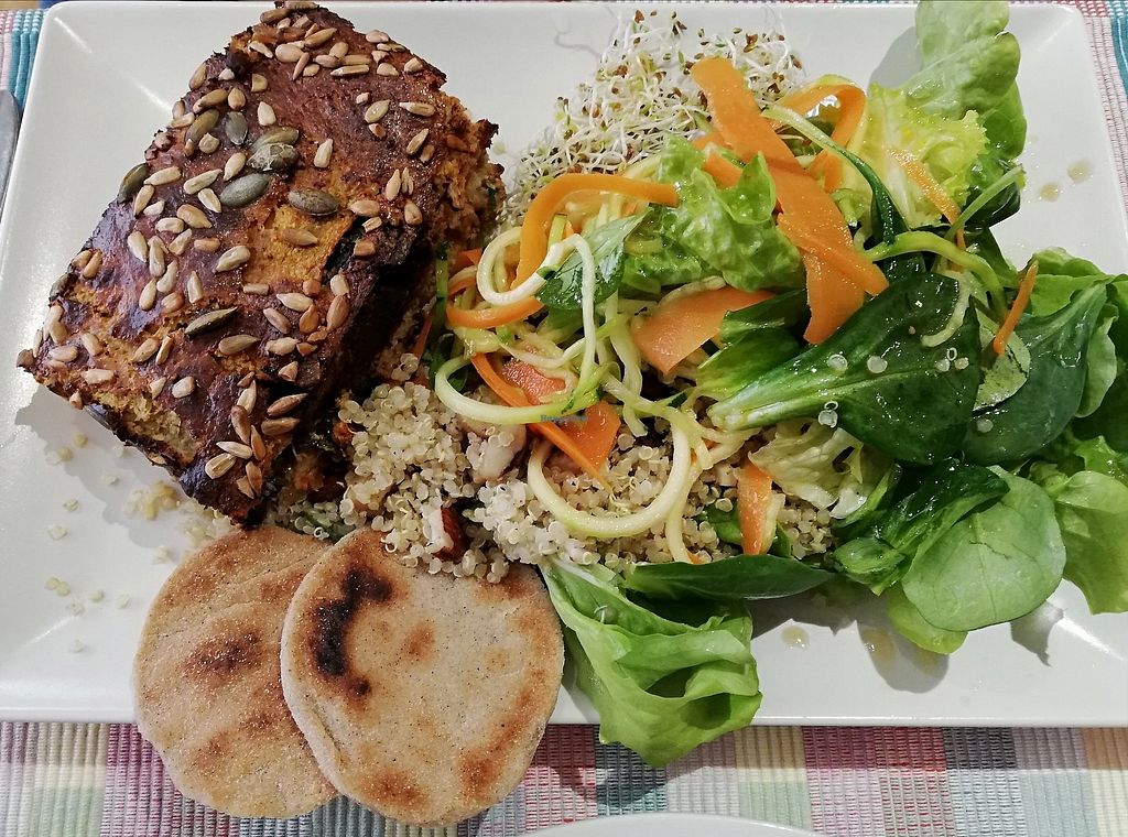 Tous les plats sont faits avec beaucoup d'amour, le couple n'est que deux à tout faire par eux mêmes... les plats, les quiches, les desserts.. tout est bien travaillé et délicieux! Entièrement vegan et gluten free. Le nouvel endroit est bcp plus spacieux avec plusieurs tables à l'intérieur.. à manger sur place ou à emporter.